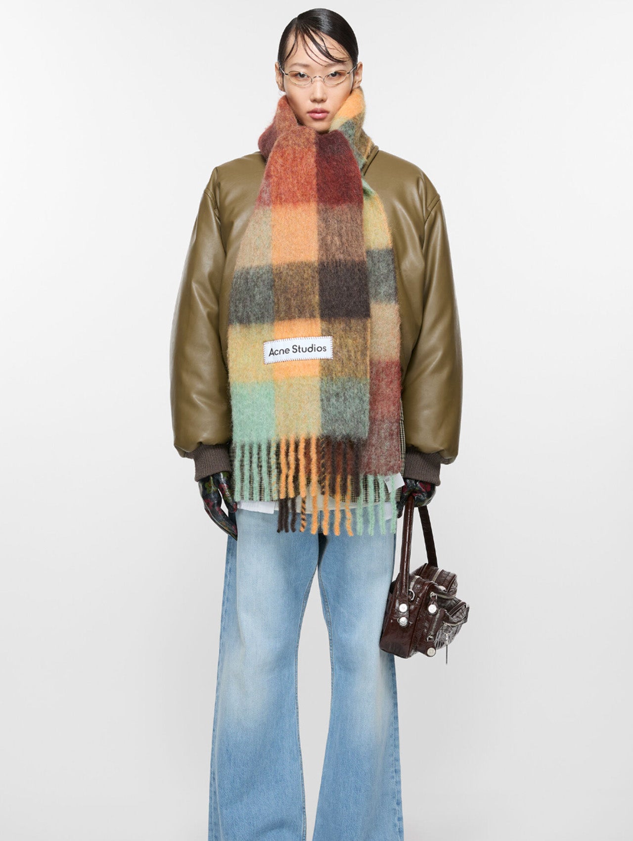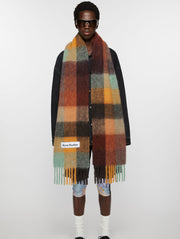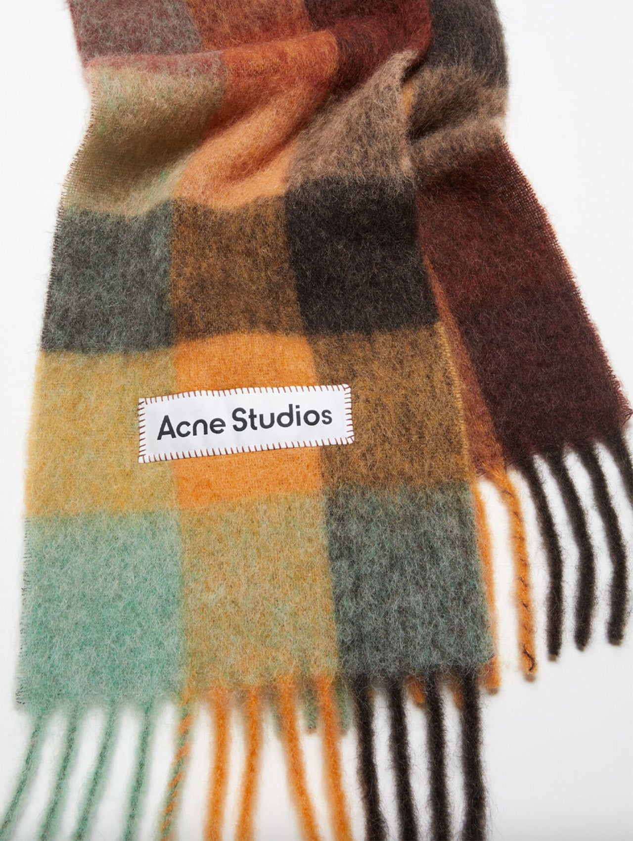 Acne Chestnut Brown & Yellow Mohair Checked Scarf
