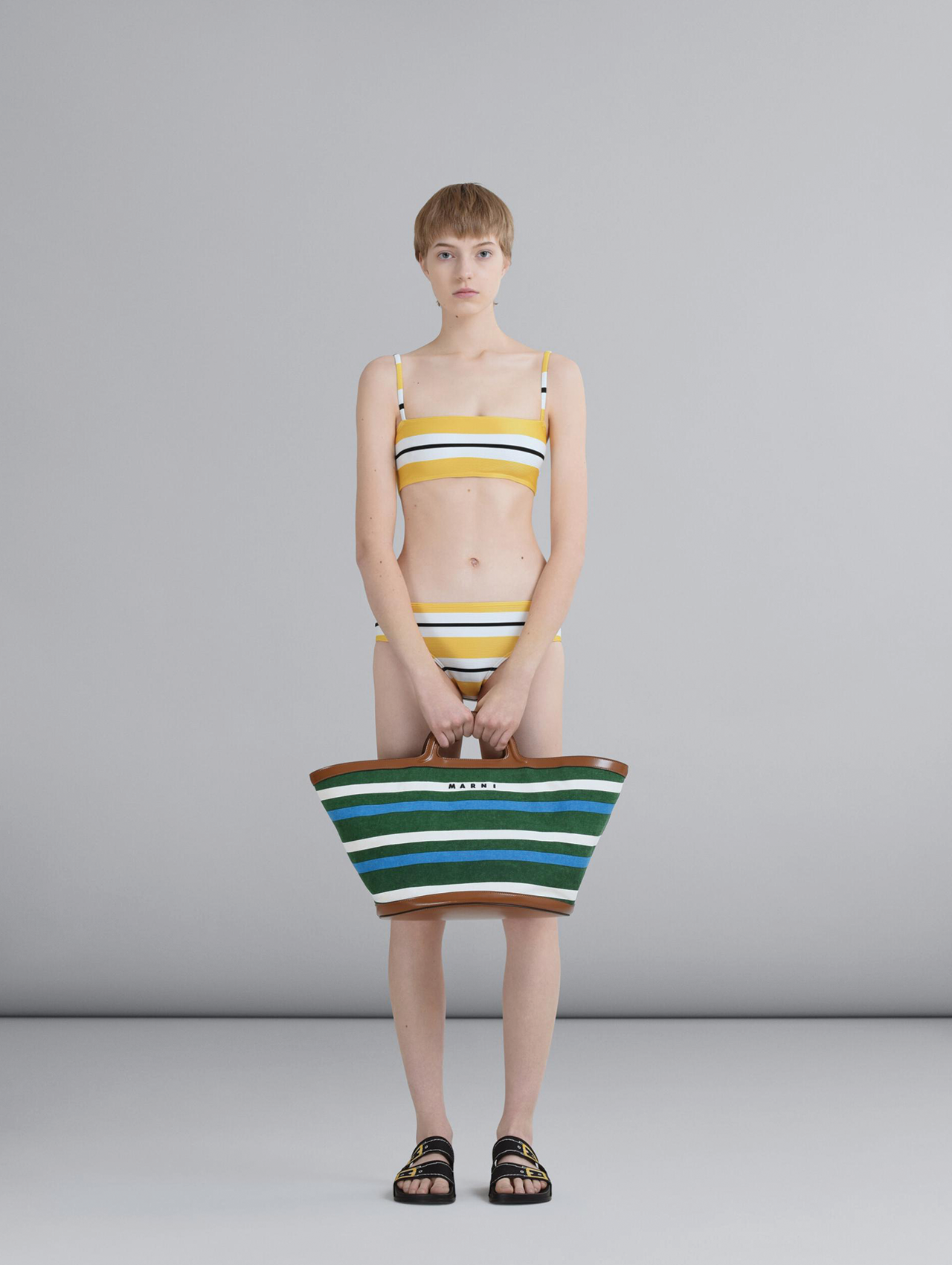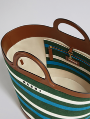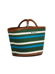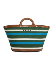 For Resort 2022, Francesco Risso sought to create clothing that brings people joy. Hand-woven in Italy, reinforced with soft calf leather and striped in Marni's signature bold colours - this hold all basket bag does just that.