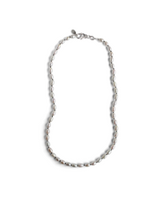 A genderless reinterpretation of the classic pearl necklace. There were a lot of good things to come out of lockdown - and Momoko Hatano’s eighth collection is one of them. A freshly-made mother at the time of the collection’s conception, the designer’s curiosity about natural evolution and change is evident in the spiraling sterling silver, coils of freshwater pearls, and other curving, golden motifs that swirl through the entire collection like infinity loops.