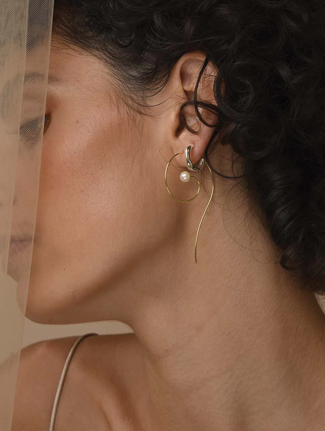 Inspired by the organic formations of the baroque pearl, the Baroque hoops are a delicately imperfect reimagining of the classic hoop earring. Designed for everyday wear.