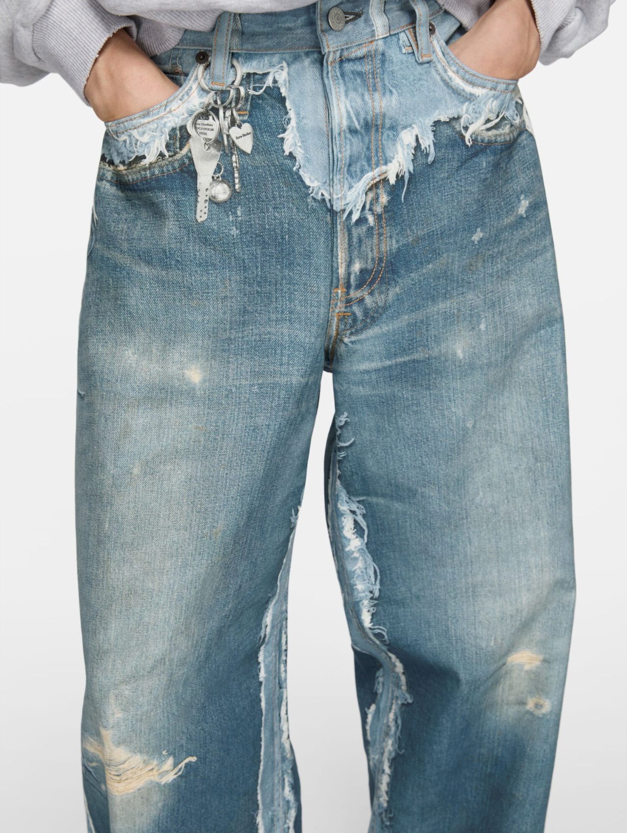 The 1981 jeans are cut to a baggy fit with a low waist, wide leg and long length. This season's iteration is adorned with a trompe l'oeil optical illusion keychains print. Originally founded in Stockholm in 1996 as a multi-disciplinary design collective, a limited-run denim capsule collection cemented Acne Studios as a fashion industry mainstay. Designer Jonny Johansson combines his penchant for photography, art and architecture to create a contemporary, eclectic yet curated aesthetic that he dubs as “maximalist minimalism”. Almost 30 years later, Acne Studios is still the last word in Scandi-cool.