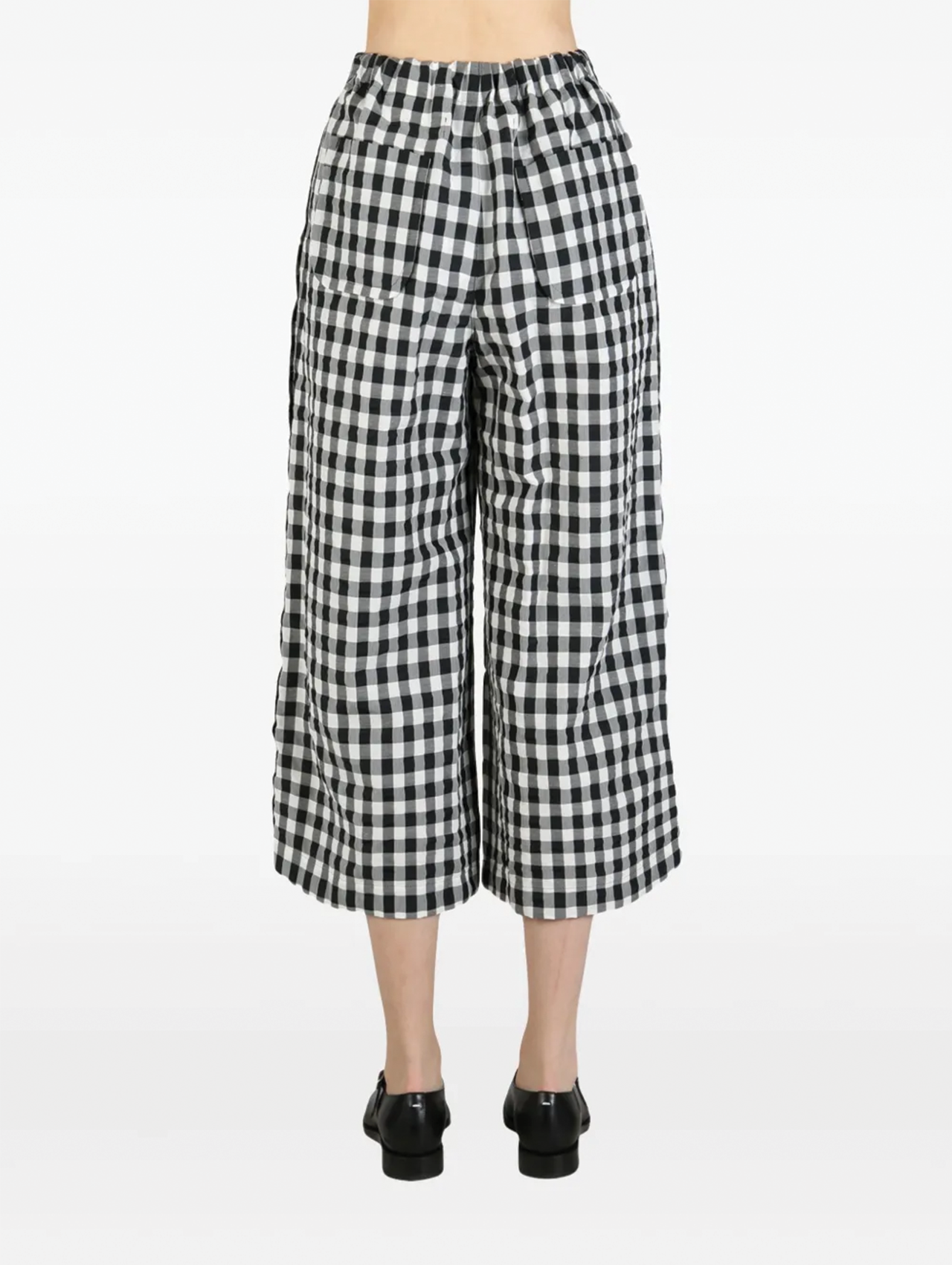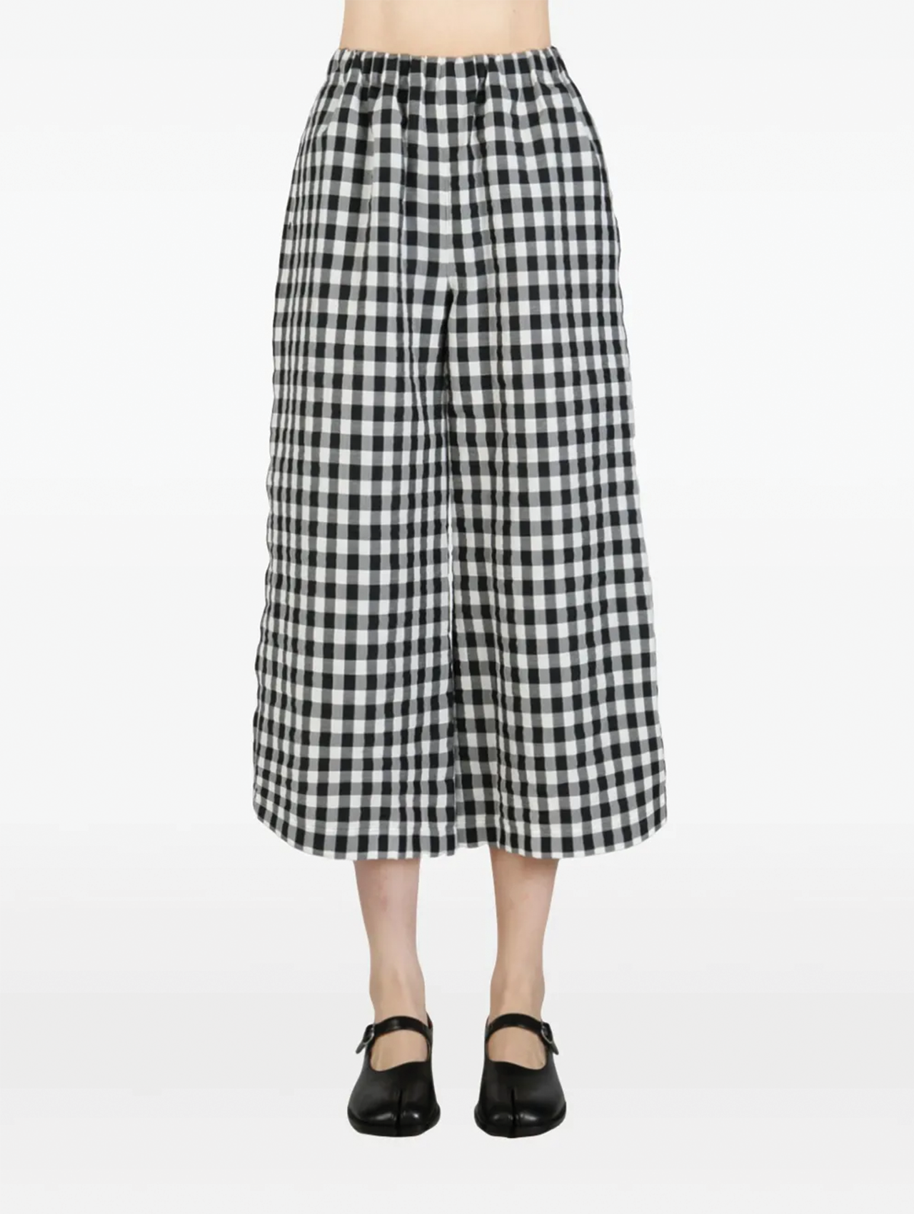 Classic black and white gingham pattern designed by Tao Kurihara, offers a stylish and comfortable wear. Kurihara, a Central Saint Martins graduate and former mentee of Junya Watanabe, Comme des Garcons TAO is an exercise in baroque, explicit femininity tempered by subtle masculinity. The evasive designer keeps her inspirations secret, but the mainstay visual elements of the line include up-cycled wedding dresses, folkloric whimsy, and frilled but distressed silhouettes that resemble punk imbued cake decorations.