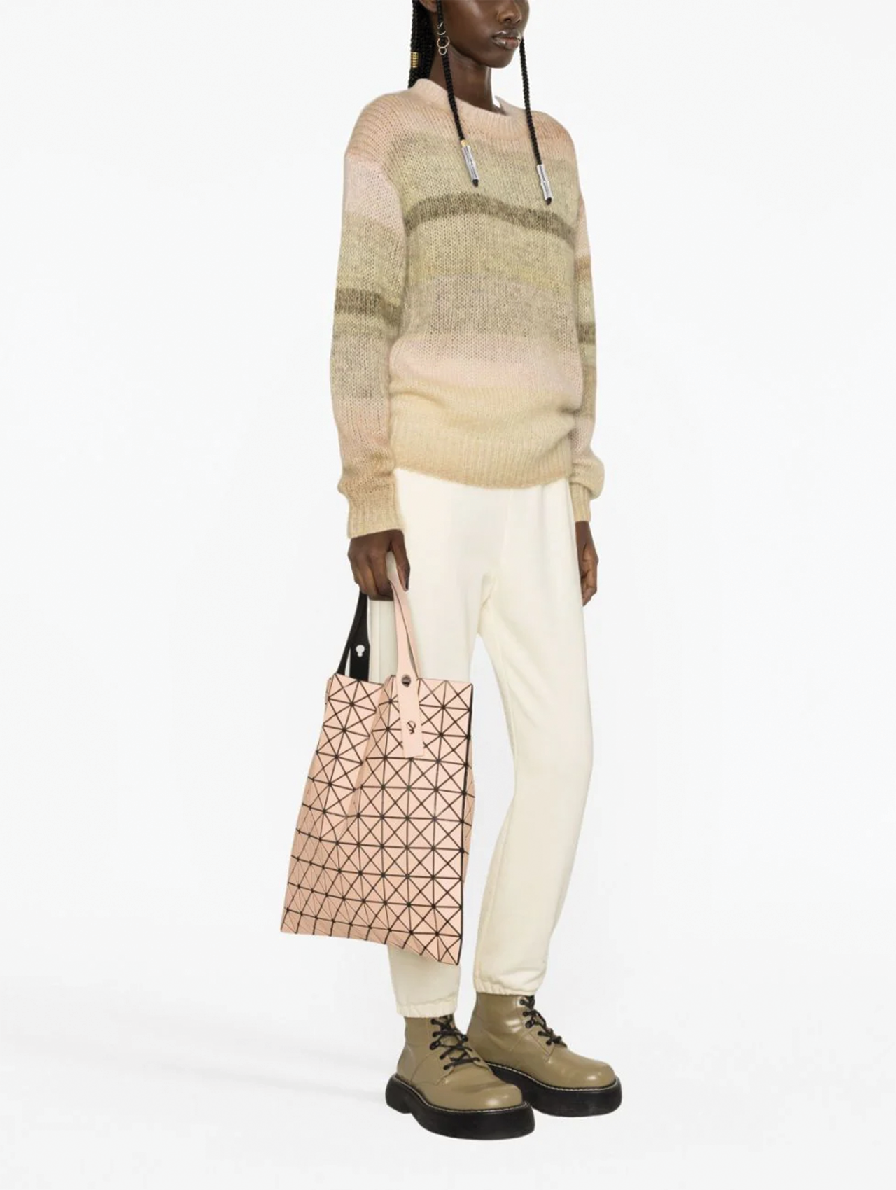 Characterized by a smooth matte finish, the Prism Frost collection offers Bao Bao's signature prism tote in a series of deliciously soft pastel tones. Constructed from a flexible grid of mirror-like vinyl triangles linked together with polyester mesh, Bao Bao bags are like clay in the hands of a sculptor, its shape and composition entirely at the whim of its owner. An internal zipper pocket runs almost the length of this bag, and adjustable handles can transform it from tote to shopper, depending on the occasion. There’s a reason these technical, innovative bags have gone viral, and why they are so fiercely protected by the Issey Miyake brand.