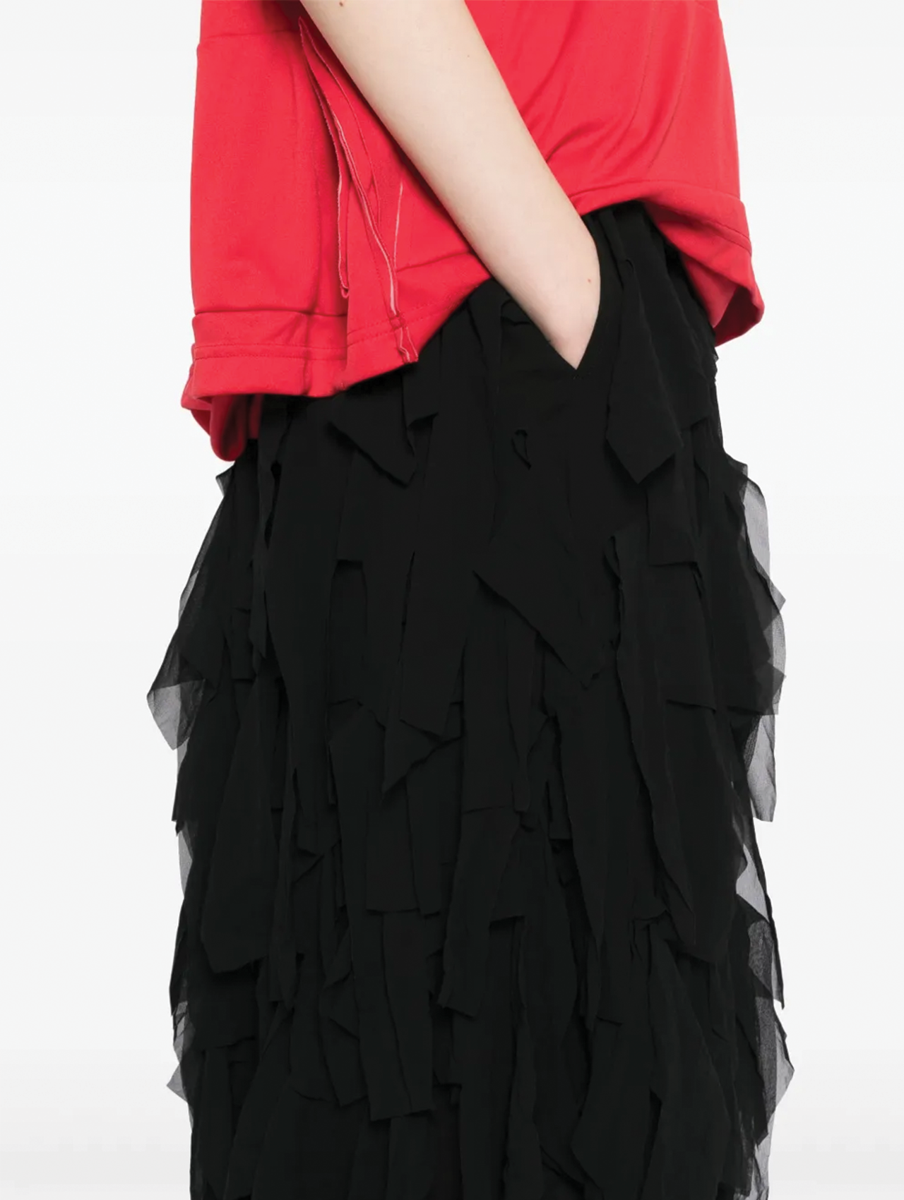 In Uncertain Future, Rei Kawakubo moves beyond last season’s anger, embracing the possibility of hope through silhouettes that balance precision with fluidity. This skirt, with its architectural folds, embodies that shift—offering both discipline and movement, as if creating space for change. As difficult to find as the clandestine designer herself, the ‘Comme Des Garcons Comme Des Garcons’ line is a distillation of the forward-looking CDG spirit, and is fiercely protected by Kawukubo.