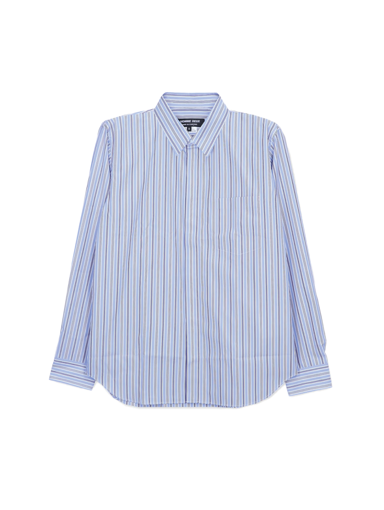 CDG Homme Deux Blue Striped Concealed Placket Shirt