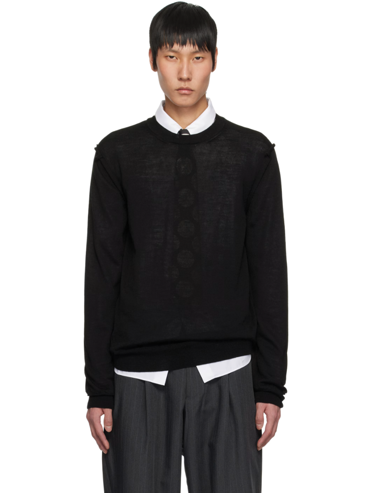 Homme Deux Black Rolled Seam Sweater