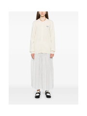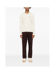Applique logo patch on the sleeve, V-neck, Front button closure