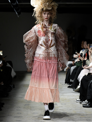 Led by Tao Kurihara, a Central Saint Martins graduate and former mentee of Junya Watanabe, Comme des Garcons TAO is an exercise in baroque, explicit femininity tempered by subtle masculinity. The evasive designer keeps her inspirations secret, but the mainstay visual elements of the line include up-cycled wedding dresses, folkloric whimsy, and frilled but distressed silhouettes that resemble punk imbued cake decorations.