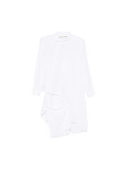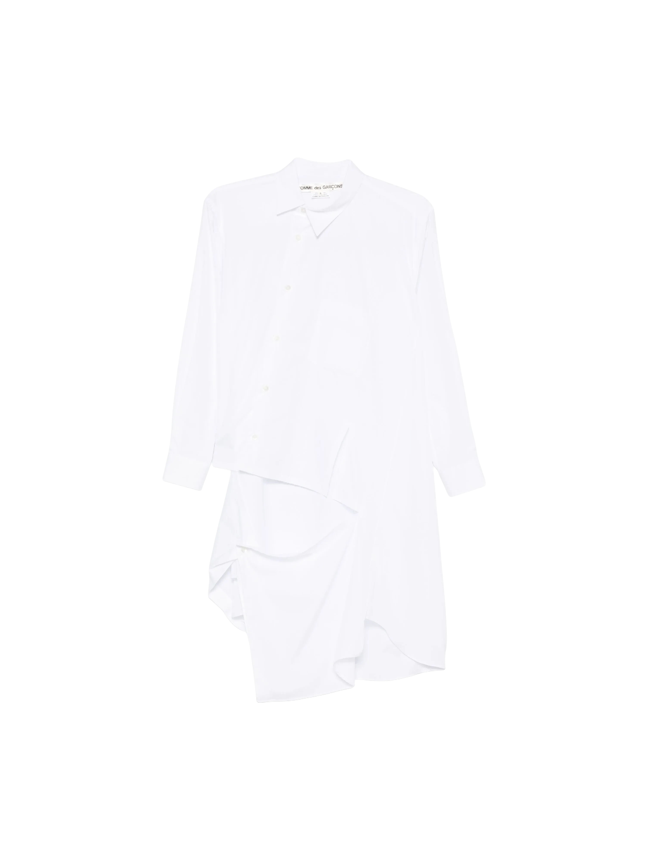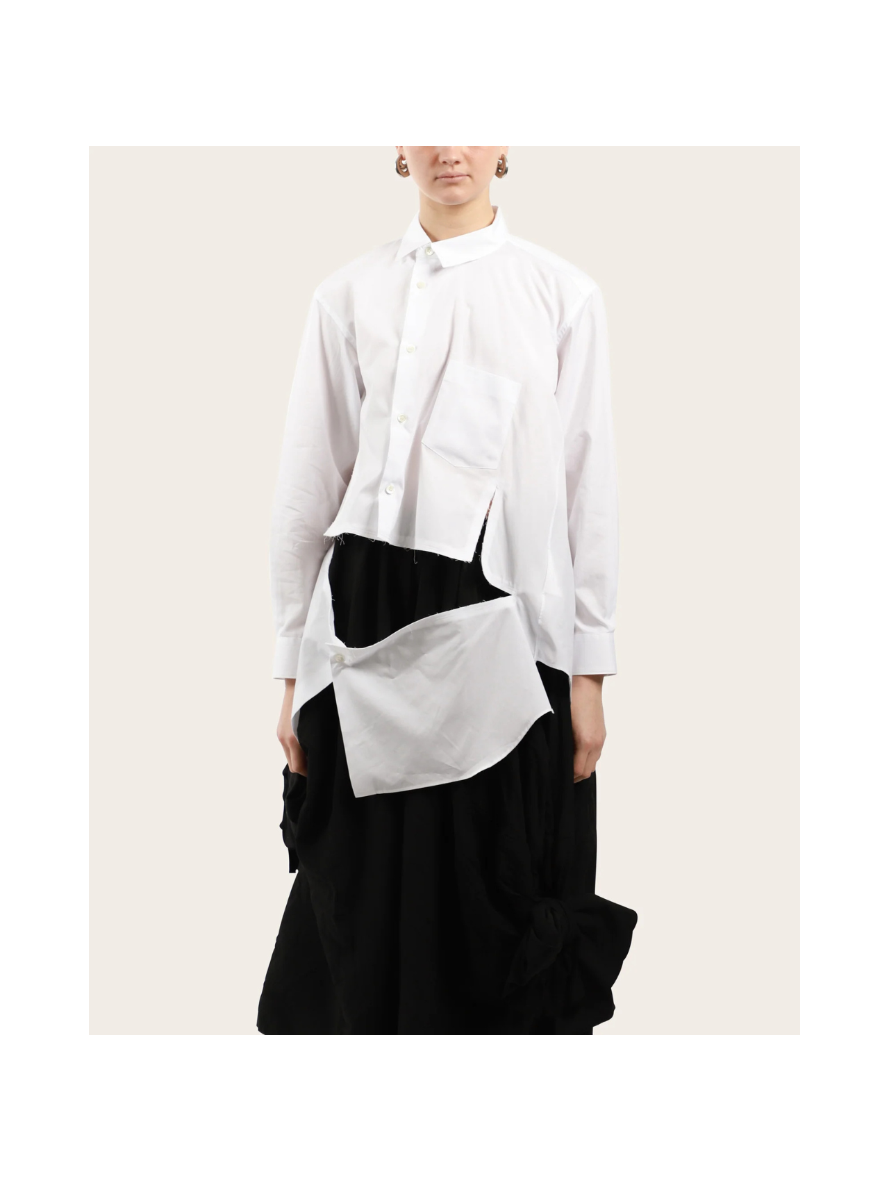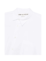 A long, black cut-out shirt that can be buttoned and draped in a multitude of ways to suit the wearer's whim. In her AW25 collection, Rei Kawakubo continues her quiet rebellion, dismantling the idea of 'uniform' with curved silhouettes cut from menswear fabrics. “Recently we feel that big business, big culture, global systems, world structures maybe are not so great after all. There is strong value in small,” she says. “Small can be mighty.” Find the collection in store.