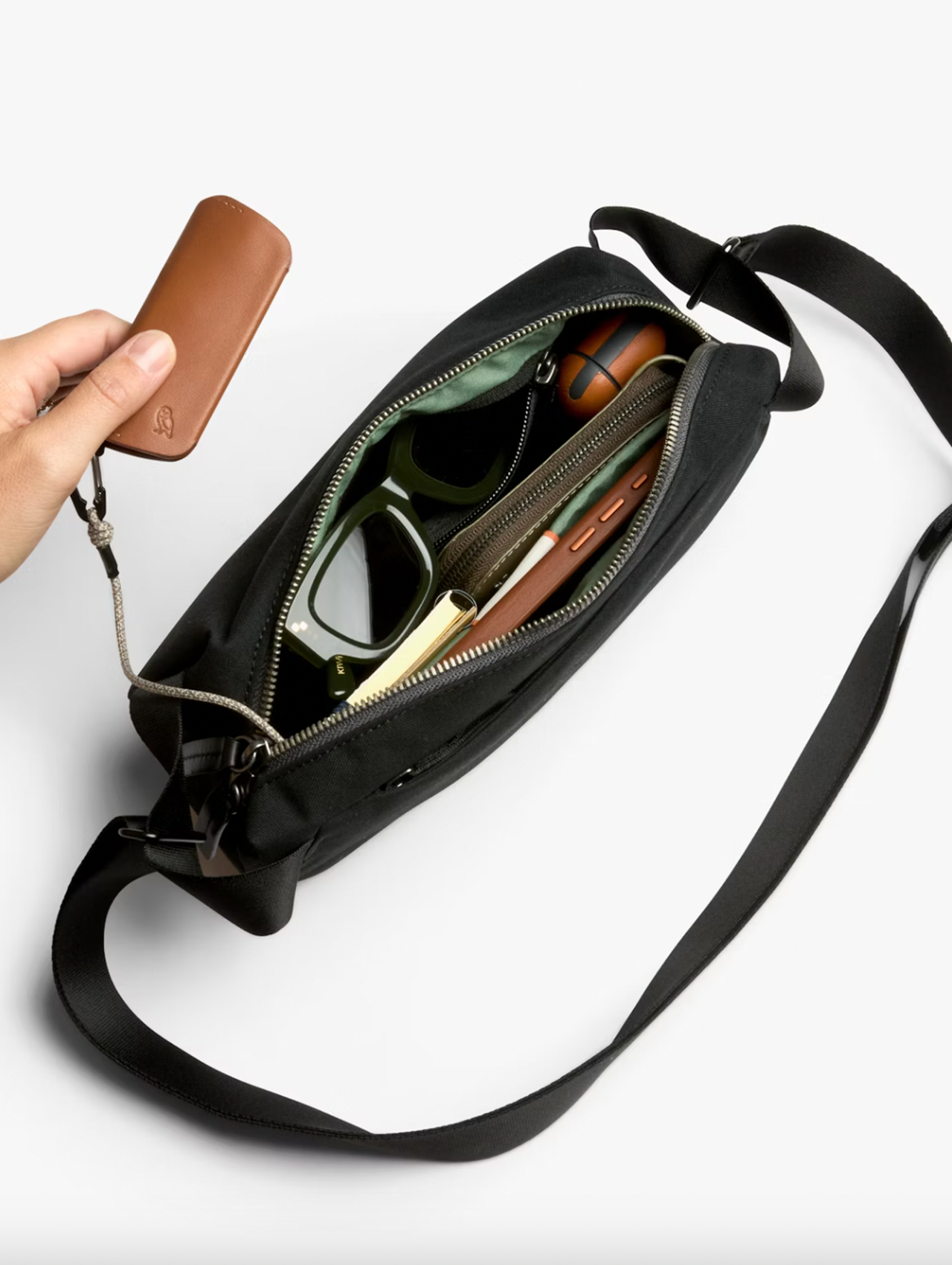The perfect grab-and-go size for Saturday coffee or a day exploring with mates, Bellroy's 7 litre, expandable sling bag is soft-feel matte canva weave with zipped pockets, compartments and style for days.