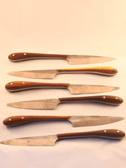 Each knife is individually crafted in Adelaide by a vet-turned-bladesmith using high carbon steel sourced from discarded files. High carbon steel is perfect for creating knives; it is very hard and retains its edge long after milder steels have become blunt. The different materials sourced result in the unique shape and function of each individual knife... forged by hand using traditional methods to create one-off quirky creations.