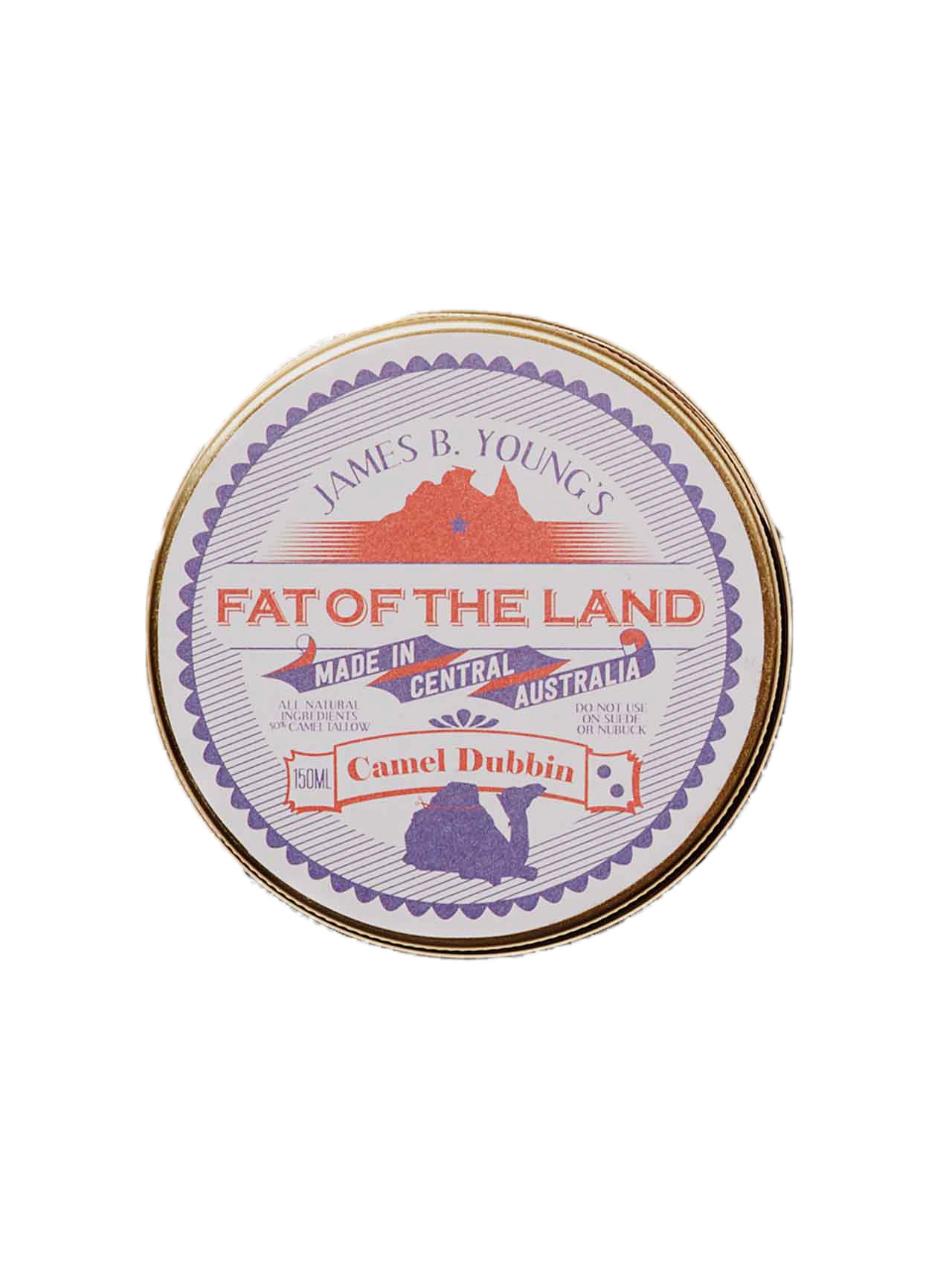 Camel dubbin is world renowned as one of the most nourishing leather conditioners in the world, and has been the secret weapon of tough outback graziers, cameleers and wily craftsmen from the top end for generations. Alice Springs’ saddle-maker turned bespoke outfitter and bootmaker James B Young takes camel fat, a naturally occurring byproduct sourced from local camel farmers, and hand renders it with a mix of natural ingredients to create a world-class dubbin that repels water and replenishes the natural oils necessary to maintain a supple and resilient leather. Apply to office brogues, leather satchels and farm boots alike.