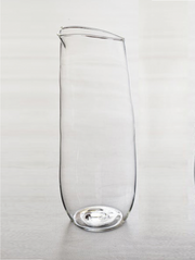 Malfatti's slender, pointy carafe is mouth blown in New York from durable, laboratory grade borosilicate glass. Intentionally misshapen and delightfully lightweight, the same material used to insulate the NASA Space Shuttle has been remoulded here to aid you in transferring wine from bottle to glass. Let's toast to that.