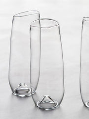 Debate rages over the appropriate way to serve sparkling wines of all origins, but in reality the rules are simple: keep it cold, keep it fizzy and, if you must, share it. With a small bubble-catching indentation on its base, Malfatti’s slender, delicate prosecco glasses nail it on all fronts and are mouth blown in New York from durable, soirée-friendly borosilicate glass – the same material used to make laboratory ware. Intentionally misshapen like the company’s namesake and astonishingly lightweight, these stemless flutes accommodate juice and granita with equal ceremony and are the best way to toast an anniversary.