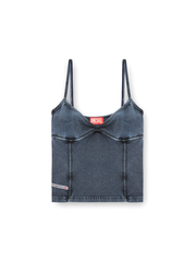 Not your average cami. This spaghetti-strap top is paneled in stretch jersey, washed to look like beat-up indigo denim, and finished with a sly fifth-pocket flag. Diesel's FW25 collection is equal parts heritage and hedonism: Italian denim, unruly party tops, video-game inspired handbags, and stretchy tees designed for chaos.
