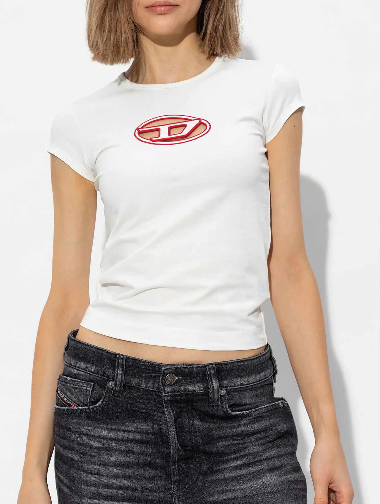Diesel White T-Angie cut-out logo T-shirt