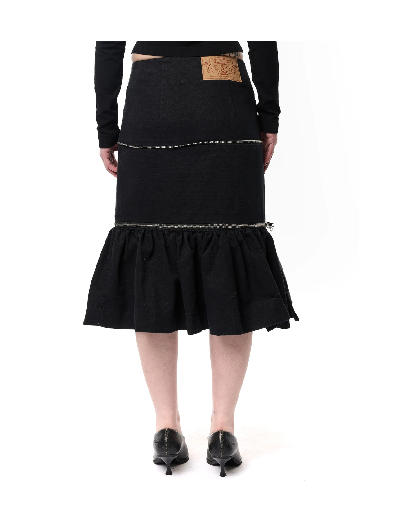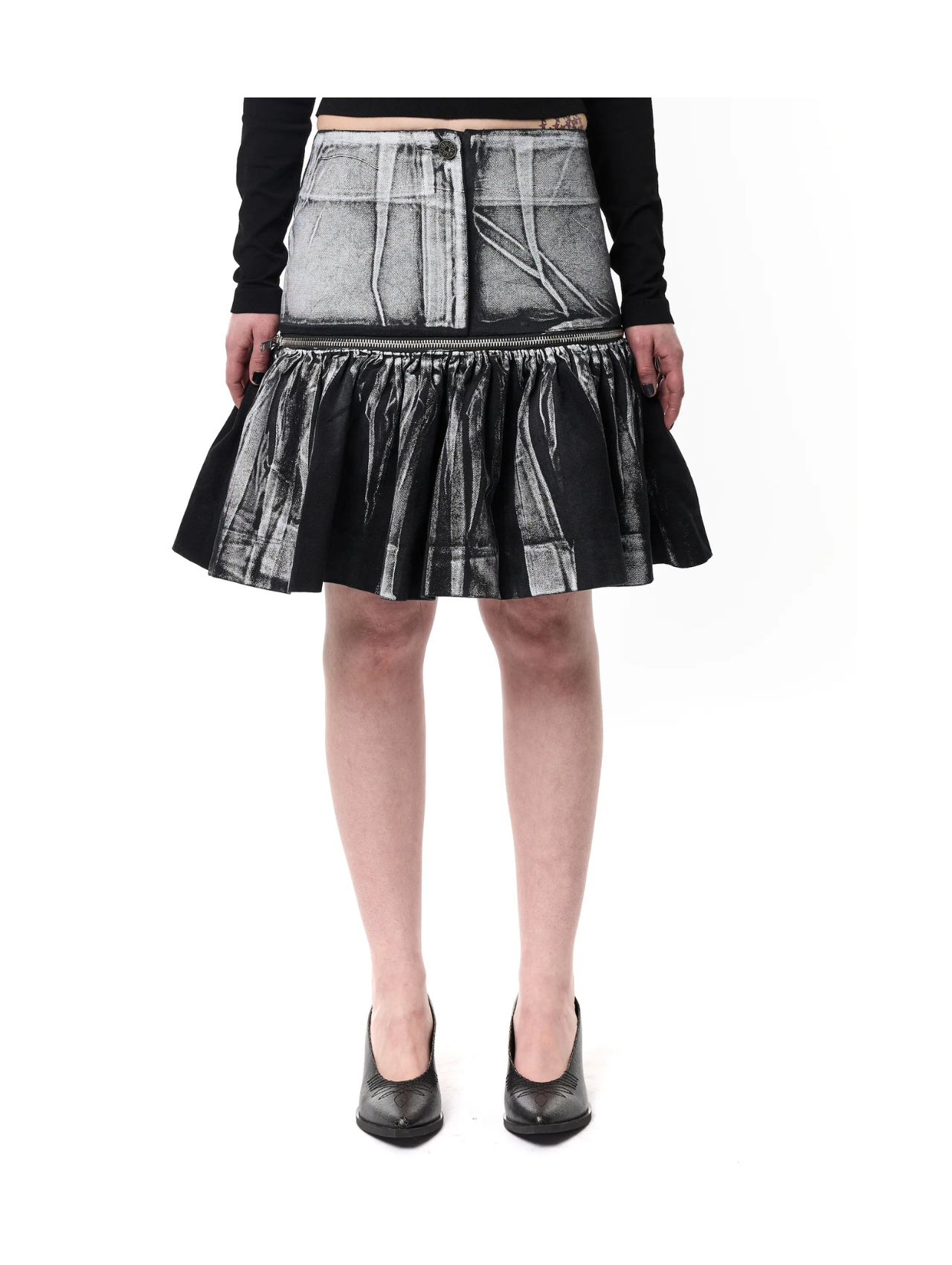 A wearable canvas, this painted, zippered section skirt walks the line between artistry and pragmatism: wear it as long or risqué as you like. Vaquera’s AW25 collection is a subversive mash-up of workwear grit and high-drama playfulness, where everyday uniforms are reimagined as bold, painted statements.