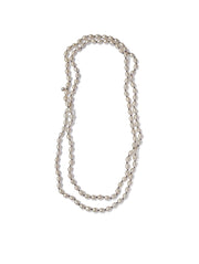 A genderless reinterpretation of the classic pearl necklace, this version can be worn as a long, delicious strand or doubled to create a two-strand extravaganza. There were a lot of good things to come out of lockdown - and Momoko Hatano’s eighth collection is one of them. A freshly-made mother at the time of the collection’s conception, the designer’s curiosity about natural evolution and change is evident in the spiralling sterling silver, coils of freshwater pearls, and other curving, golden motifs that swirl through the entire collection like infinity loops.