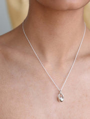This freshwater pearl is half-hidden in a tiny handmade sterling silver 'amulet' and strung on a fine cable chain. A continuation of Momoko Hatano’s exploration of vintage and ethically sourced pearls, every piece in the ‘Shinju 2’ collection has been designed as an heirloom to be passed between generations of family and friends.