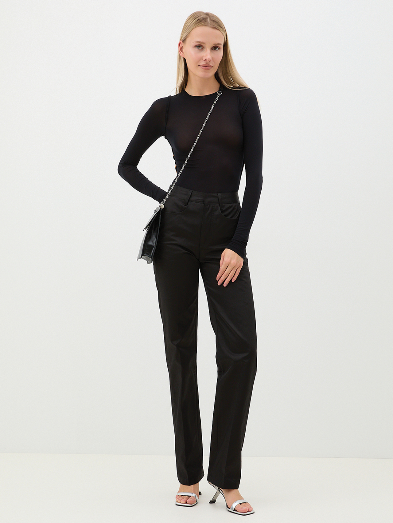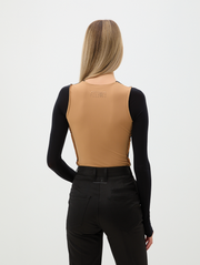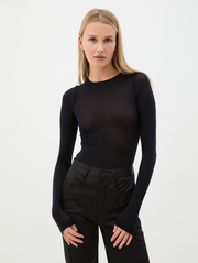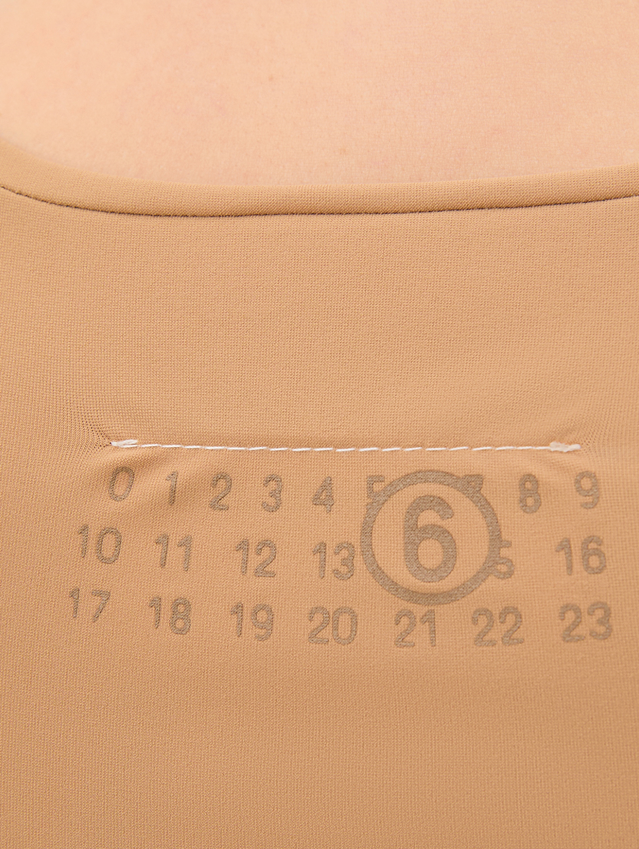 Described as Maison Margiela’s “cool, younger sister”, MM6 reinterprets and recreates Margiela’s runway experiments and archive pieces. The team at MM6 is known for designing with equal parts evasion and candour. With their signature combination of bold, meta, statement pieces and subtly subversive detailing, Spring Summer 2024 provides us with fun, new ways of dressing the body. This fitted layering piece is a call back to one of Martin Margiela's most iconic upcycled materials - the nylon stocking.