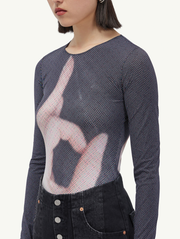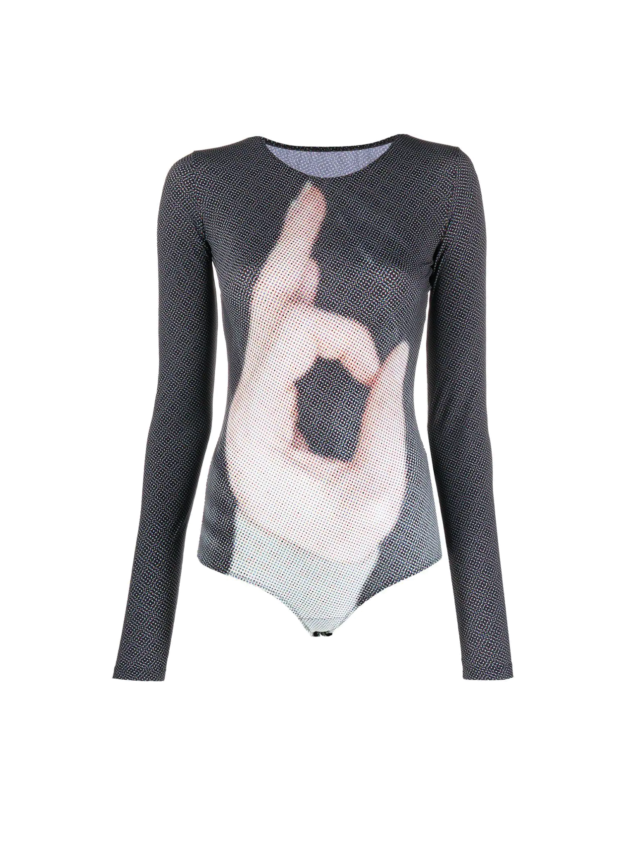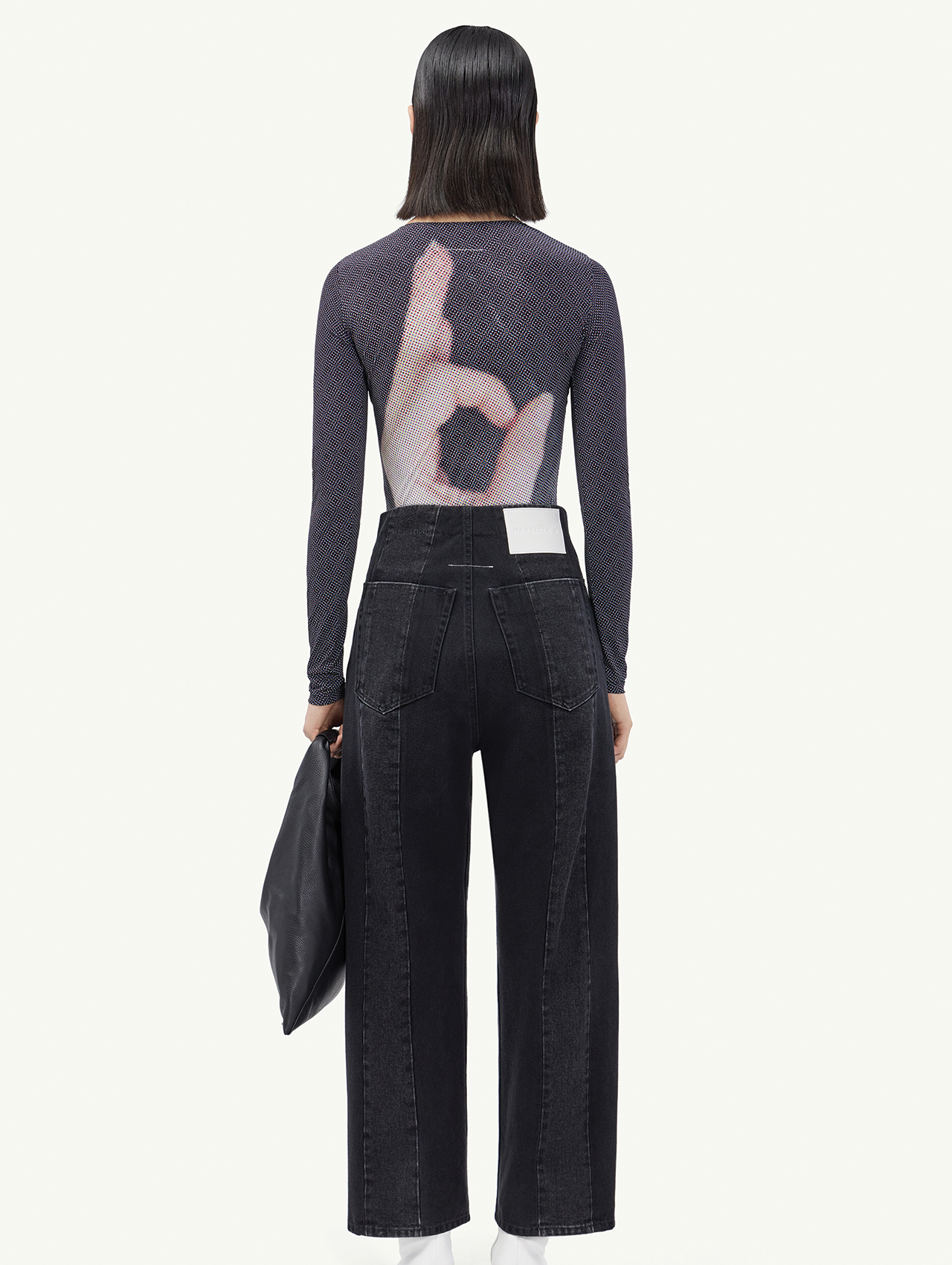 Described as Maison Margiela’s “cool, younger sister”, MM6 reinterprets Margiela’s runway experiments and archive pieces in soft, wearable fabrics. While MM6 garments are designed as stand alone pieces, their mastery lies in their ensemble potential: each piece of clothing is the building block of a go-to outfit. This trompe l'oeil bodysuit is typical of the brand's tongue-in-cheek humour.