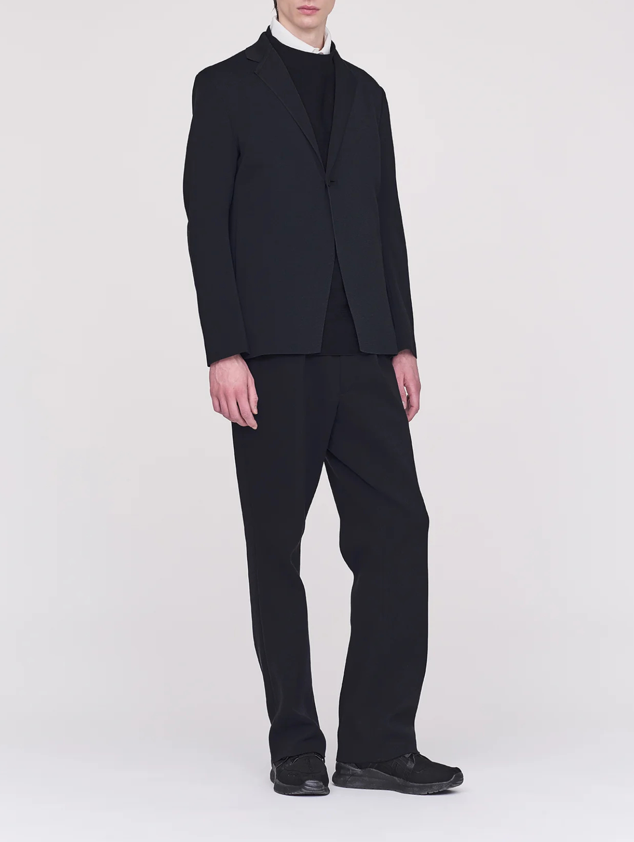 A relaxed jacket in a refined knit fabrication that suits all occasions. Japanese designer Yusuke Takahashi created Clothing For Contemporary life after 6 years of leading the design team at Issey Miyake Men. Based around computer program-aided knitwear, the CFCL collection is intended to serve as the Swiss army knife of the wardrobe – offering versatile, technology-driven knitwear that’s as chic as it is practical. Using a 3-D knitwear technique that minimizes waste, CFCL is the first Japanese fashion label to attain B Corporation certification.