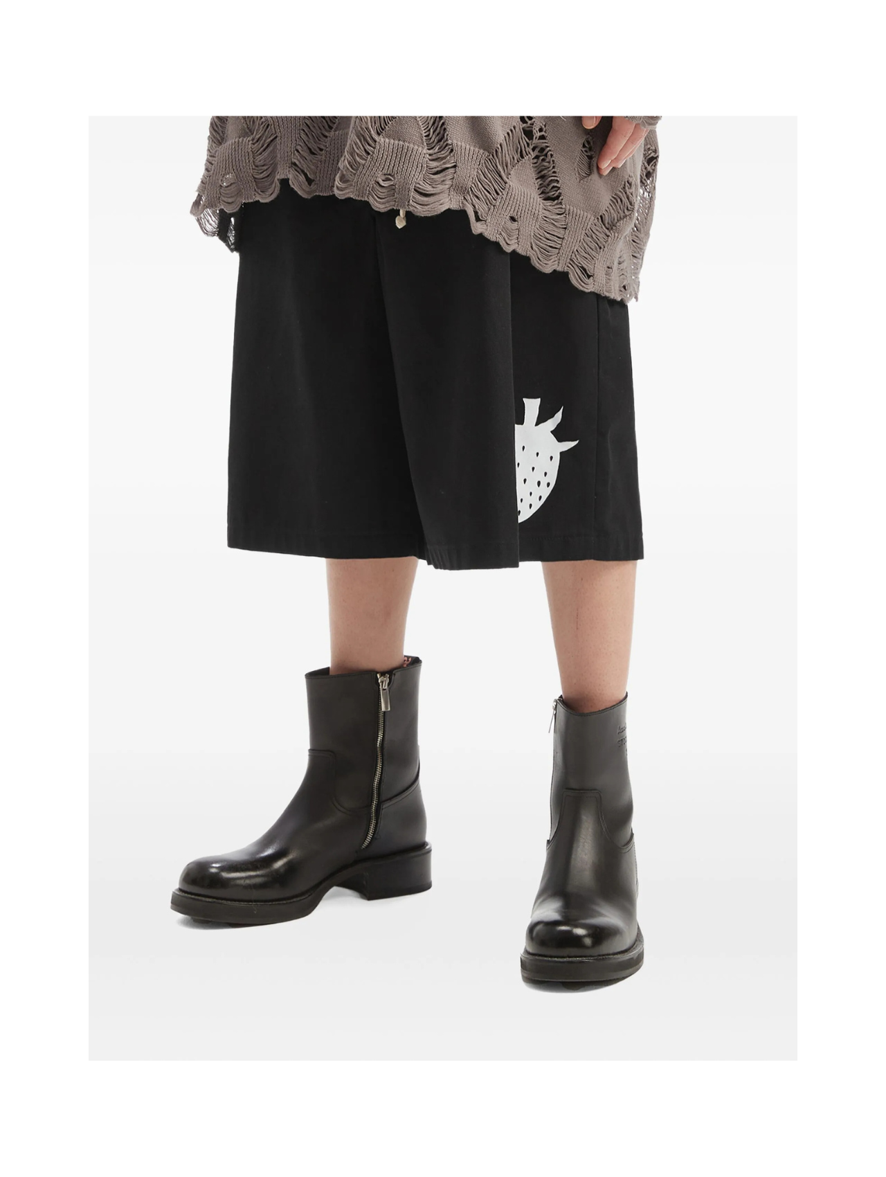 Heavy, reconstructed drawstring shorts with Brett's signature strawberry print. Westfall’s AW25 'Hostile Architecture' collection looks at the strange ways cities try to control how we move and rest: the benches cut in half so no one can stay too long, the spikes where people might have slept... The Angelino artist's answer is quiet and human: hand-drawn illustrations, hand painted hoodies and reworked vintage. Whatever works.
