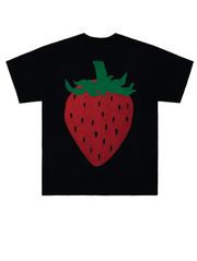 This T-shirt features a playful graphic and a relaxed silhouette, epitomised by the black strawberry design. Brett Westfall’s collection continues his exploration of wearable art, transforming everyday garments into expressive canvases. The collection features his signature distressed loungewear sets adorned with eclectic graphics, tie-dye, and paint stains, turning staples like T-shirts and sweat suits into artful statement pieces.