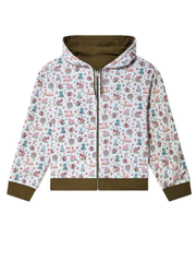 This 100% cotton waffle-knit zip-up hoodie features vibrant characters screen printed throughout. Part of the SS25 Sweet Dreamz collection—co-creatively directed by Japanese born, New York based artist and designer Eri Wakiyama, the design draws inspiration from her nostalgic childhood memories, blending them with the tension of growing up. Darker elements of the collection, such as melancholic Straw Babies, are juxtaposed with vibrant pops of colour and upbeat cartoon motifs, embodying the uncertain transition from adolescence to adulthood.