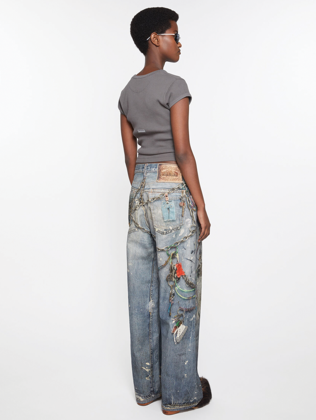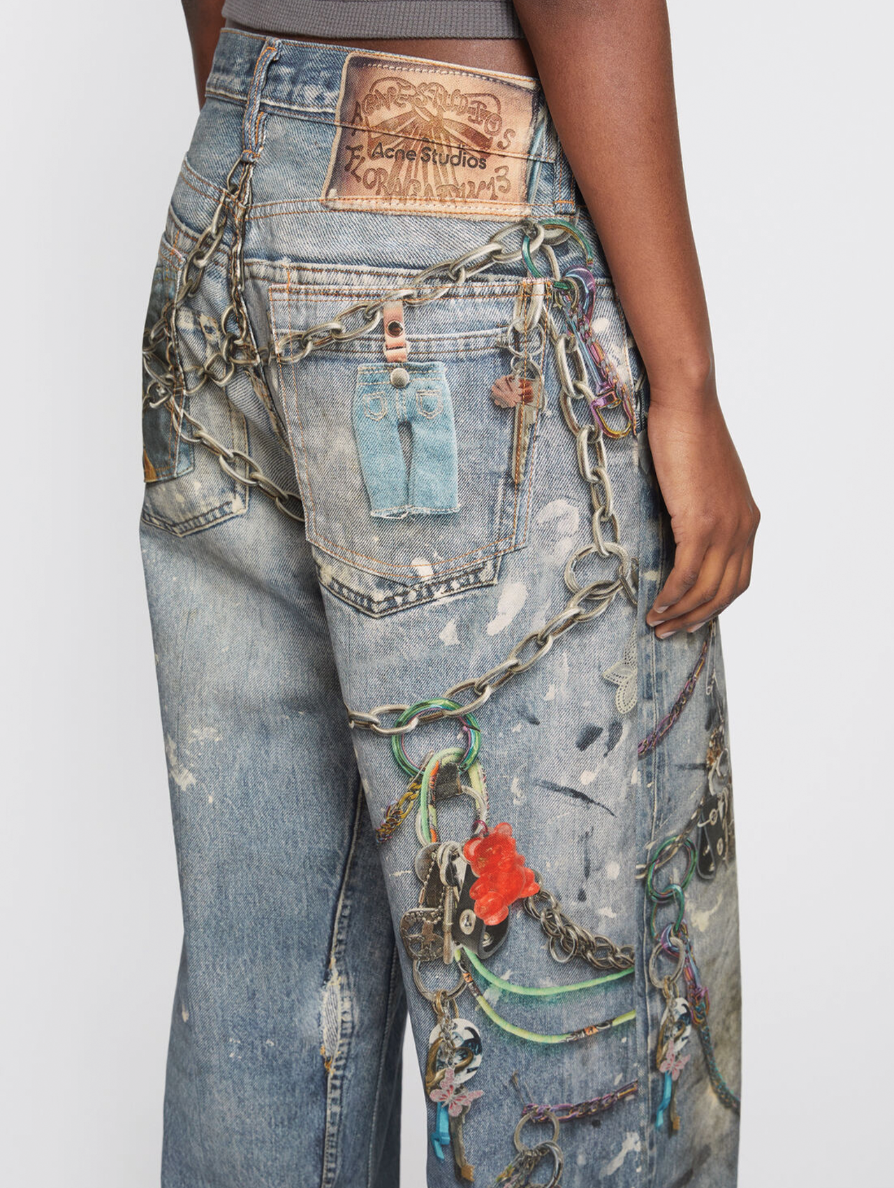 The 1981 jeans are cut to a baggy fit with a low waist, wide leg and long length. This season's iteration is adorned with a trompe l'oeil optical illusion keychains print. Originally founded in Stockholm in 1996 as a multi-disciplinary design collective, a limited-run denim capsule collection cemented Acne Studios as a fashion industry mainstay. Designer Jonny Johansson combines his penchant for photography, art and architecture to create a contemporary, eclectic yet curated aesthetic that he dubs as “maximalist minimalism”. Almost 30 years later, Acne Studios is still the last word in Scandi-cool.