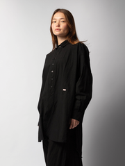 Front button closure, Asymmetric hem, Loose fit sleeves