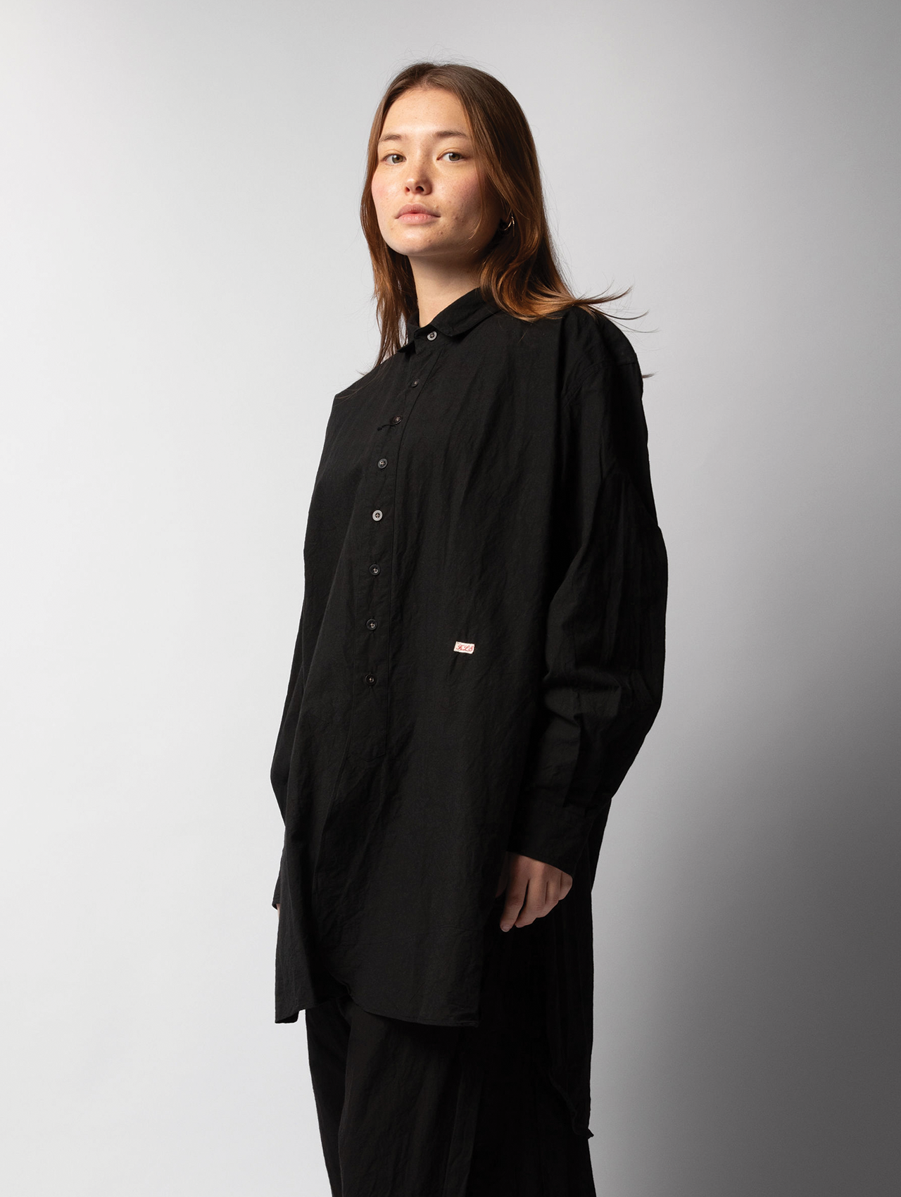 Kohei Kawamura has been known to spend small fortunes on antique Japanese fireman jackets and historical French military uniforms, just so he can pick them apart for their patterns. Cotton and linen-obsessed, Kohei makes every single piece in the Klasica range with his own two hands and only presents a collection after months of experimentation with his fabrics du jour. From his 2023 collection, this relaxed-fit shirt is made with hand-dyed cotton and linen that was densely woven to create a unique textured finish.