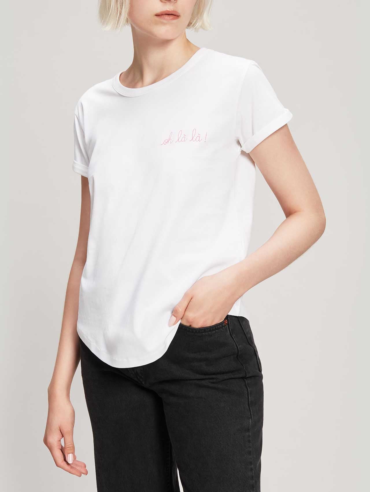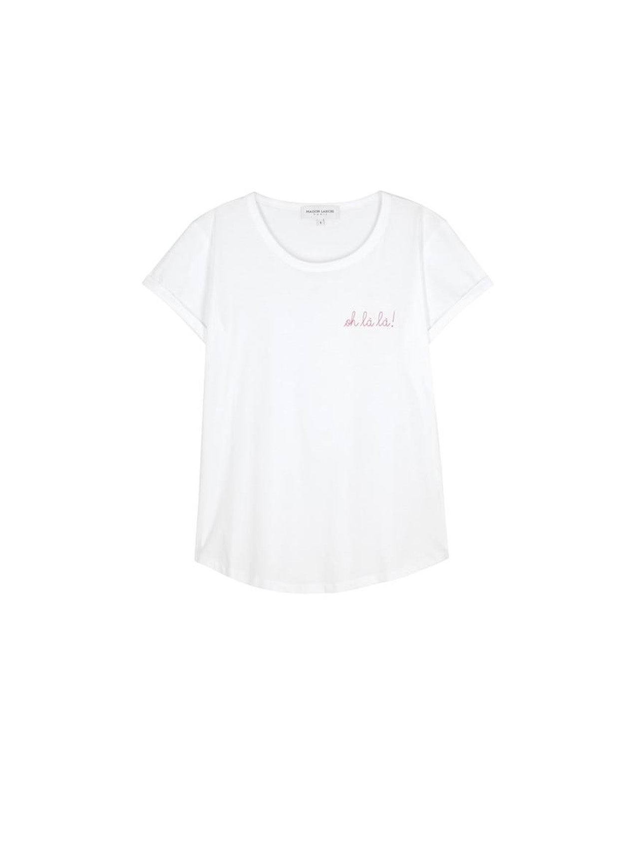 Designed in Paris, this embroidered tshirt is tasty as a snack. Maison Labiche's penchant for quality cotton, endearingly Euro phrases, and schoolgirl threadwork have won the hearts of kawaii and punk fanatics all over the world.