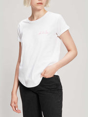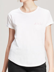 Slim fit, Hand embroidered lettering, Rolled sleeves