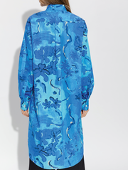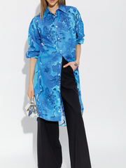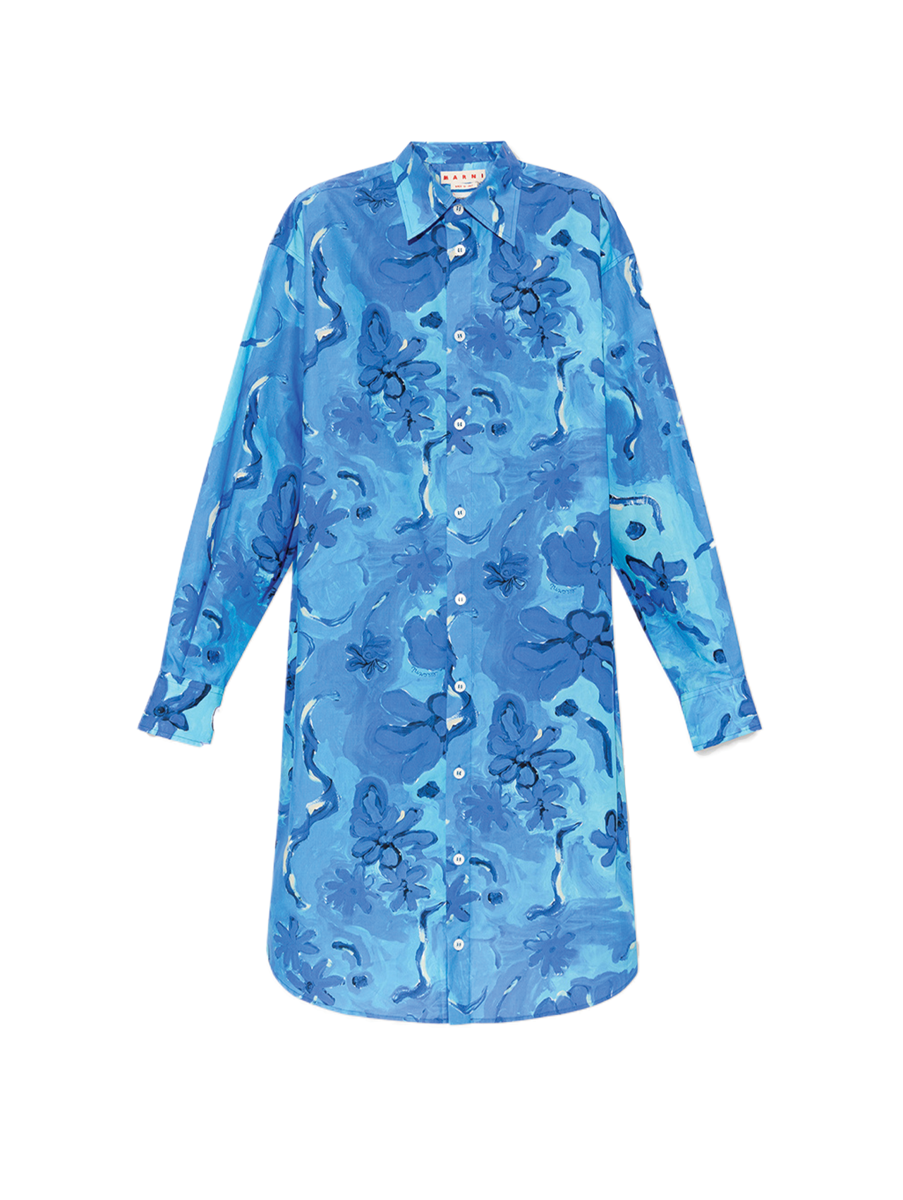 It would be an oversimplification to say that Marni’s latest collection is inspired by the sunset. “The sun never really sets somewhere – but everywhere, all the time; depending on who’s looking,” says Francesco Risso, whose designs have always emphasized subjectivity and the phenomenology of clothing. In practice, the ideas are expressed as geometric shapes rendered in dreamy, gradient hues and tactile fabrications. This technicolour piece with swirling, hand-painted flowers can be worn as either a shirt or a dress.