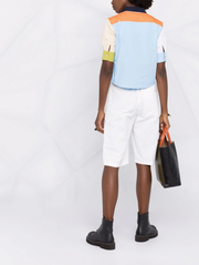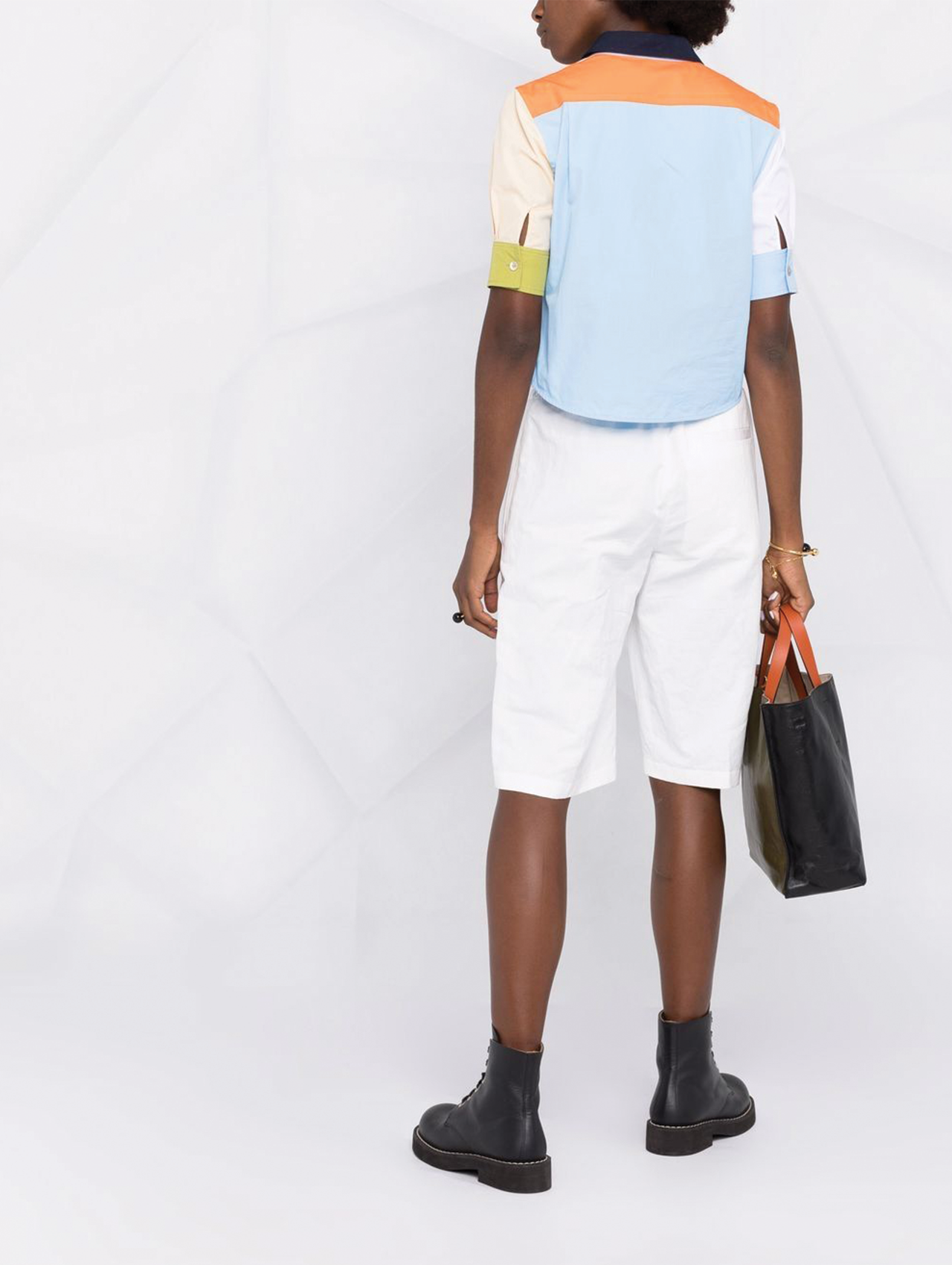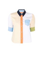 Each section of this delightful top is cut from a different coloured fabric. For Resort '22, Francesco Risso sought to make clothing that brings people joy. As always, the collection was a collaboration between friends and muses, serving as a way to cultivate community and celebrate the legacy Risso has brought to Marni so far.