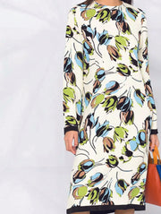 Round neck, Small split at back hem, Black contrast trim, Knee length