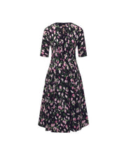 Slit neckline with tie fastening, 3/4 sleeves, A-line midi skirt