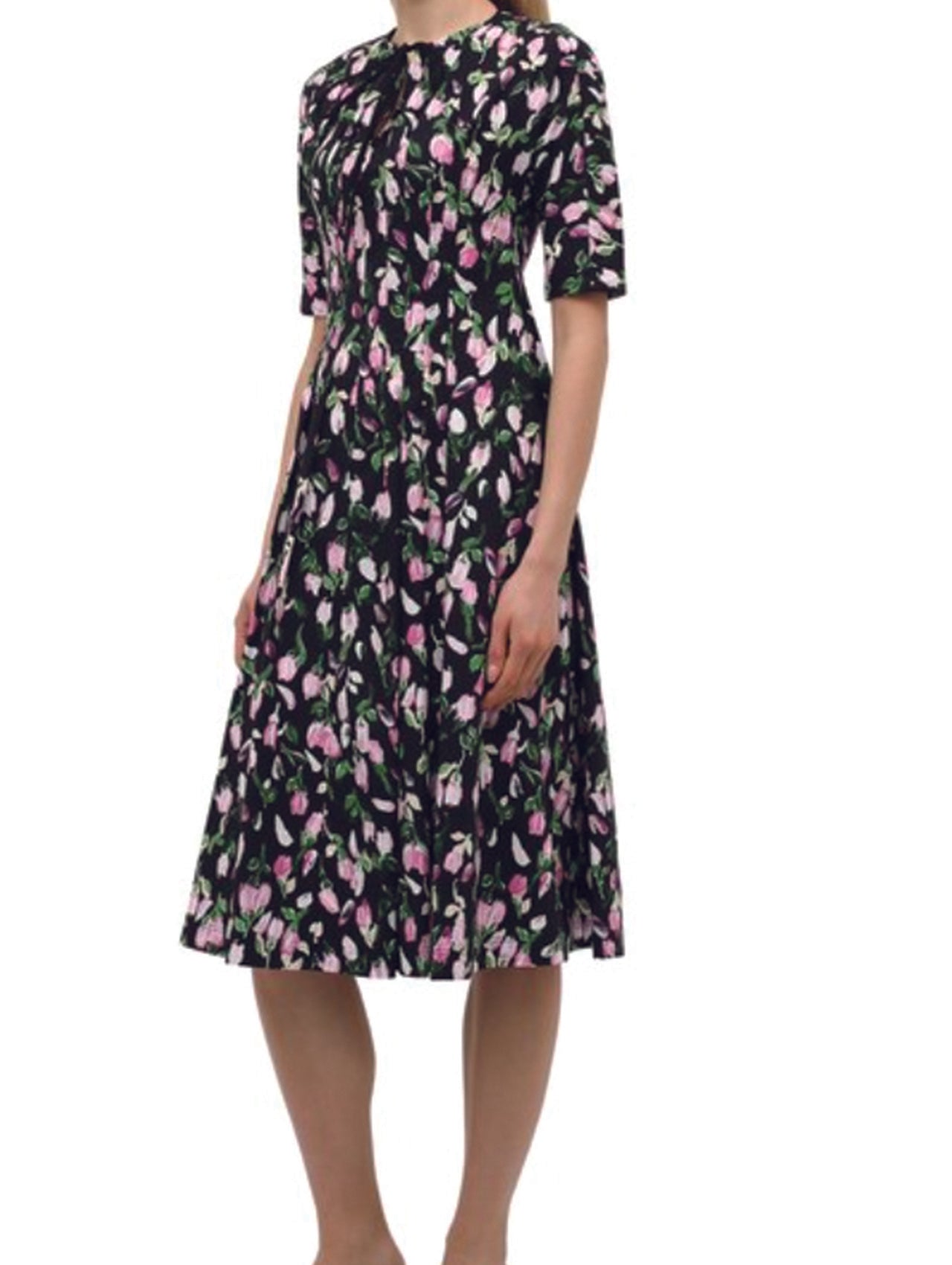 This delicately printed dress features a classic Marni silhouette. The theme of ‘Marnifesto’ is centred on the spirit of collaborative creativity, and cultivating strength in hardship through collectivism. The Marni team spent the 2020 lockdown dyeing fabric in bathtubs and making garments out of curtains, whilst Risso pulled his favourite pieces from the Marni archives to deconstruct and reinvent for a new era.