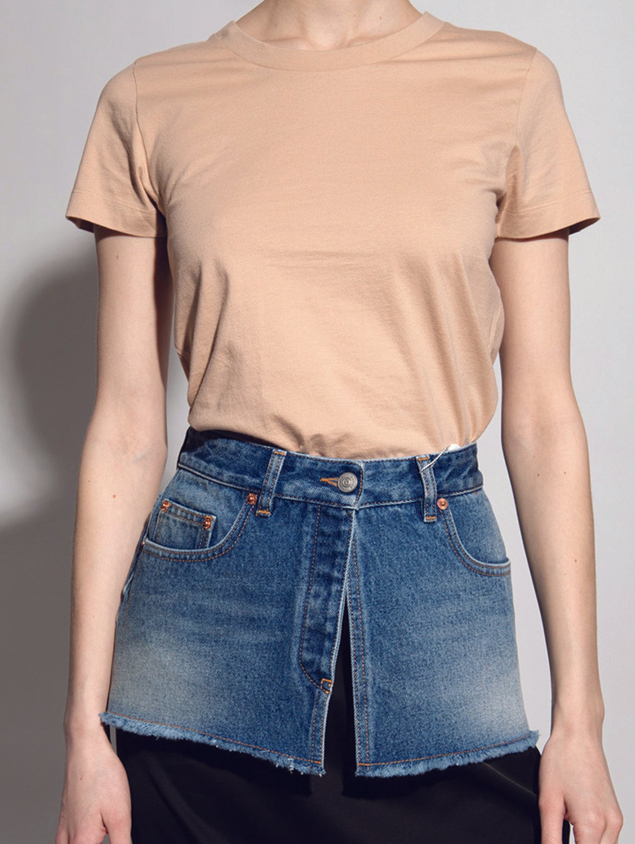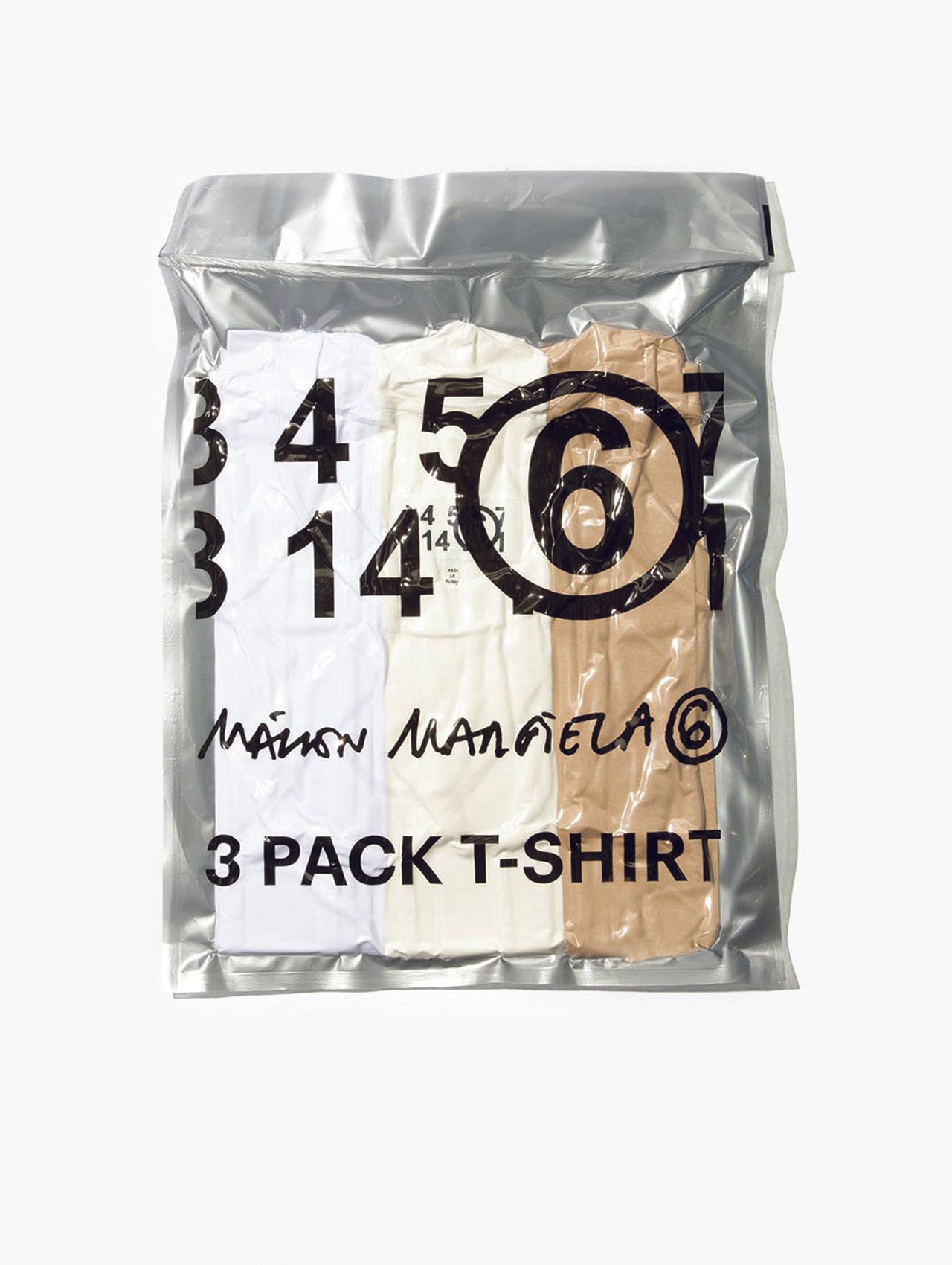 This shrunk-wrapped three-pack of thick, high quality cotton tshirts will see you through decades to come. Described as Maison Margiela’s “cool, younger sister”, MM6 reinterprets Margiela’s runway experiments and archive pieces in soft, wearable fabrics. While MM6 garments are designed as stand alone pieces, their mastery lies in their ensemble potential: each piece of clothing is the building block of a go-to outfit. The newest MM6 collection riffs on an ongoing obsession with deconstruction, oversized silhouettes and garments that can be worn inside-out, upside-down and every which way.