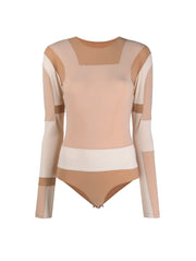 MM6 Beige Appliqué Full Sleeve Body Suit