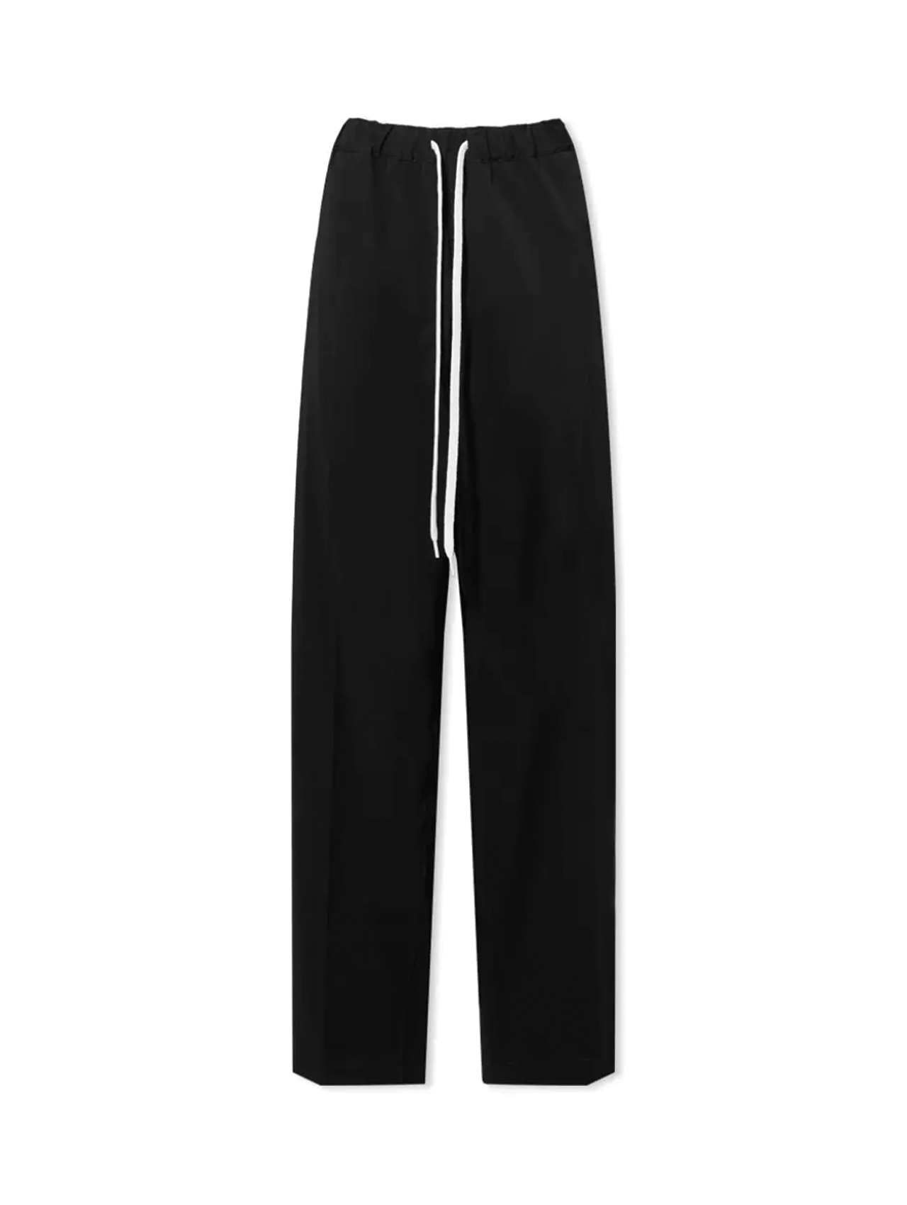 2 Side pockets, Elasticated drawstring waist, Tapered straight leg