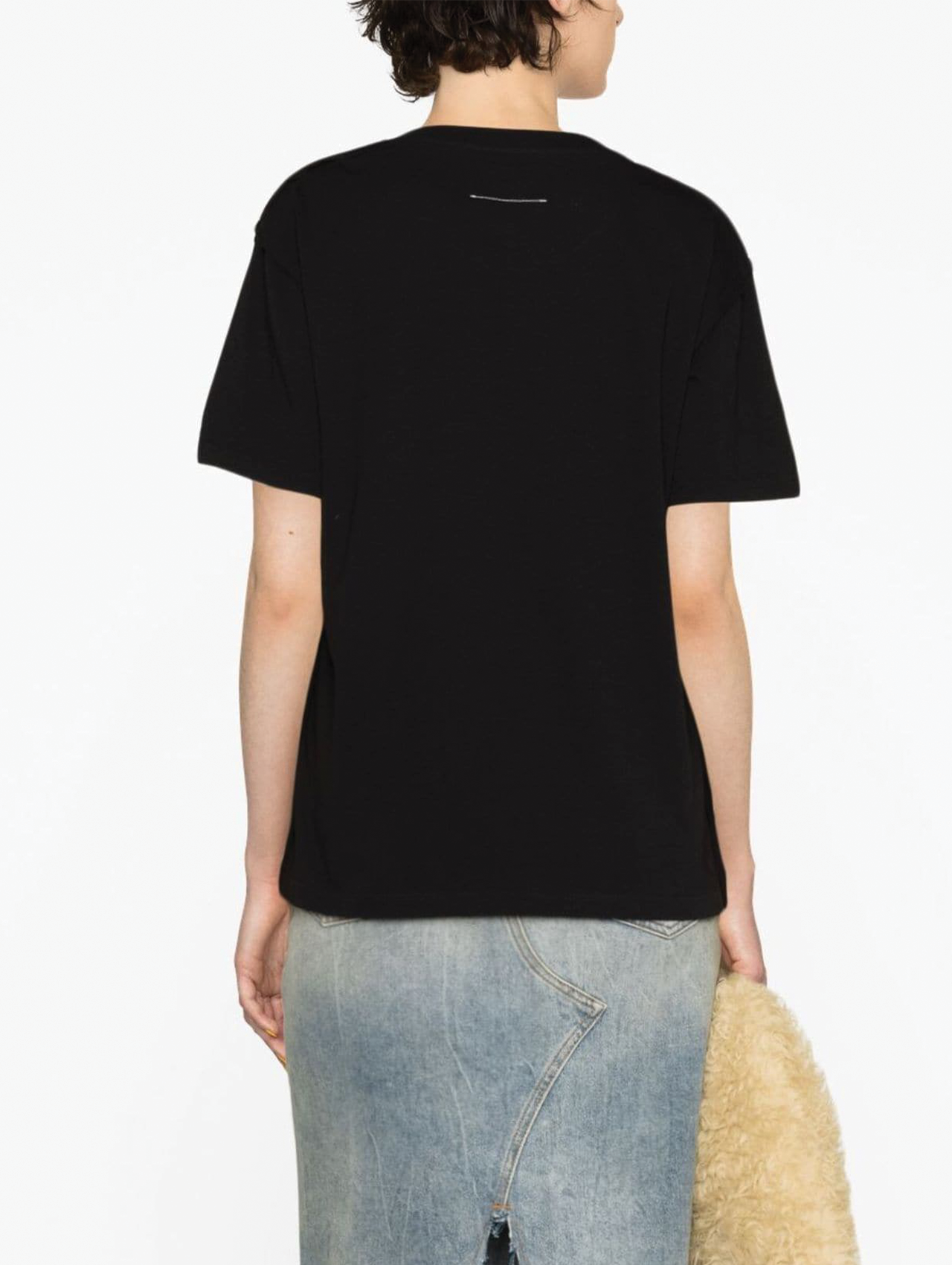 Margiela's fascination with deconstructing and reconstructing classic garments has informed the layered cutout design of this reinvented t-shirt. Described as Maison Margiela’s “cool, younger sister”, MM6 reinterprets Margiela’s runway experiments and archive pieces in soft, wearable fabrics. While MM6 garments are designed as stand alone pieces, their mastery lies in their ensemble potential: each piece of clothing is the building block of a go-to outfit.