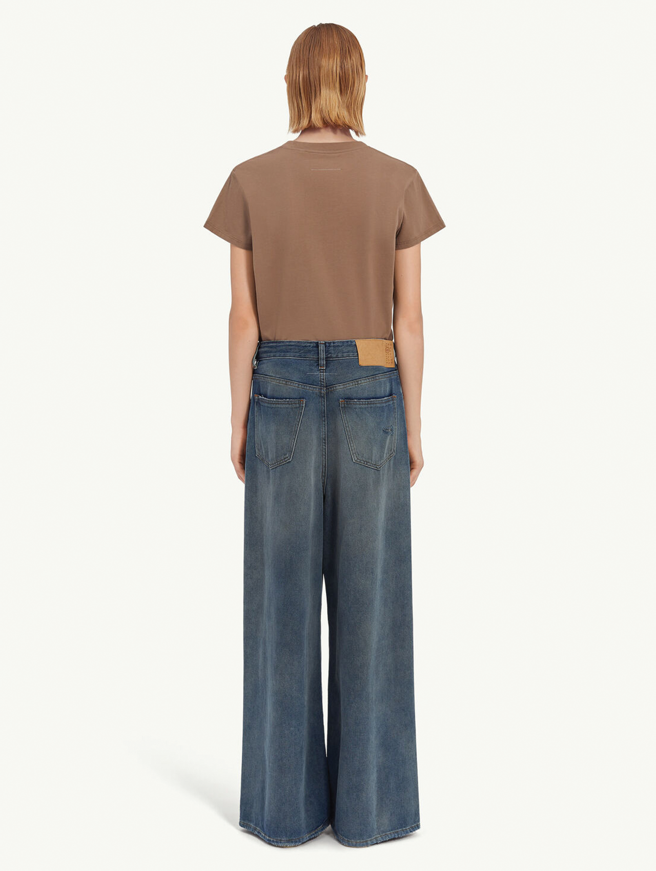Iconic white stitch line and MM5 numeric signature jacron label at the back