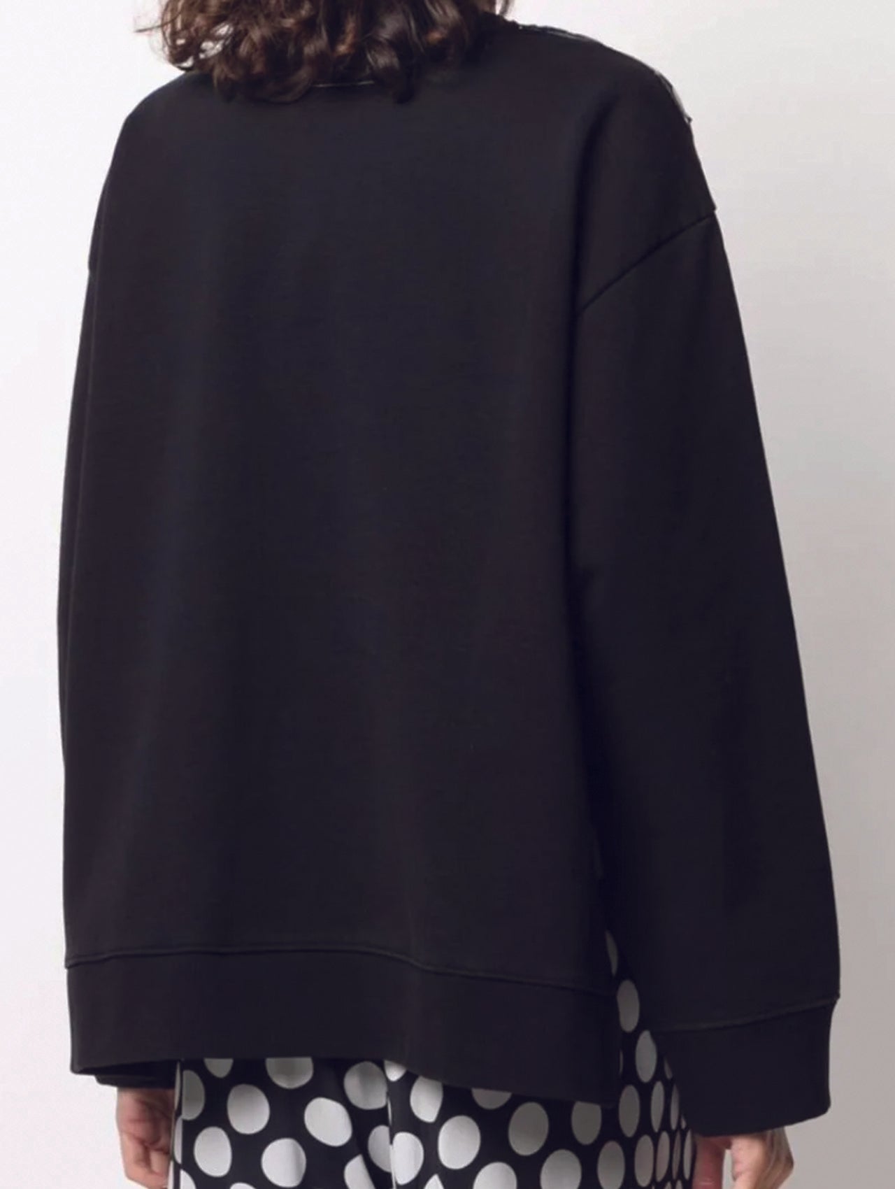 This deliciously cosy jumper proudly features a magic-eye archive print designed to warp the perception of the viewer. Described as Maison Margiela’s “cool, younger sister”, MM6 reinterprets Margiela’s runway experiments and archive pieces in soft, wearable fabrics. While MM6 garments are designed as stand alone pieces, their mastery lies in their ensemble potential: each piece of clothing is the building block of a go-to outfit. The newest MM6 collection riffs on an ongoing obsession with deconstruction, oversized silhouettes and garments that can be worn inside-out, upside-down and every which way.