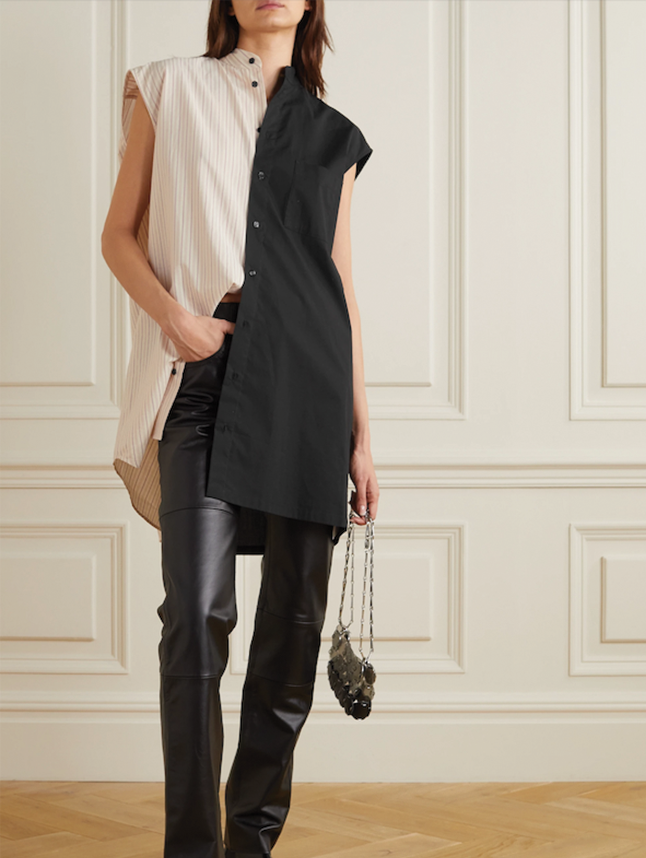 Drawing on the work from home creative process, as well as taking inspiration from French Surrealists, the team at MM6 created a Cadavres Exquis of a collection. Each designer worked on a garment in isolation, and the result is suitably eclectic. A bricolage of minimalist punk and 80s club culture aesthetics emerge – and staples from the house archives are reinvigorated with masculine silhouettes and raw feminine detailing.