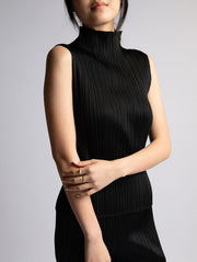 Pleats Please Issey Miyake Black Basics High Collar Sleeveless Top