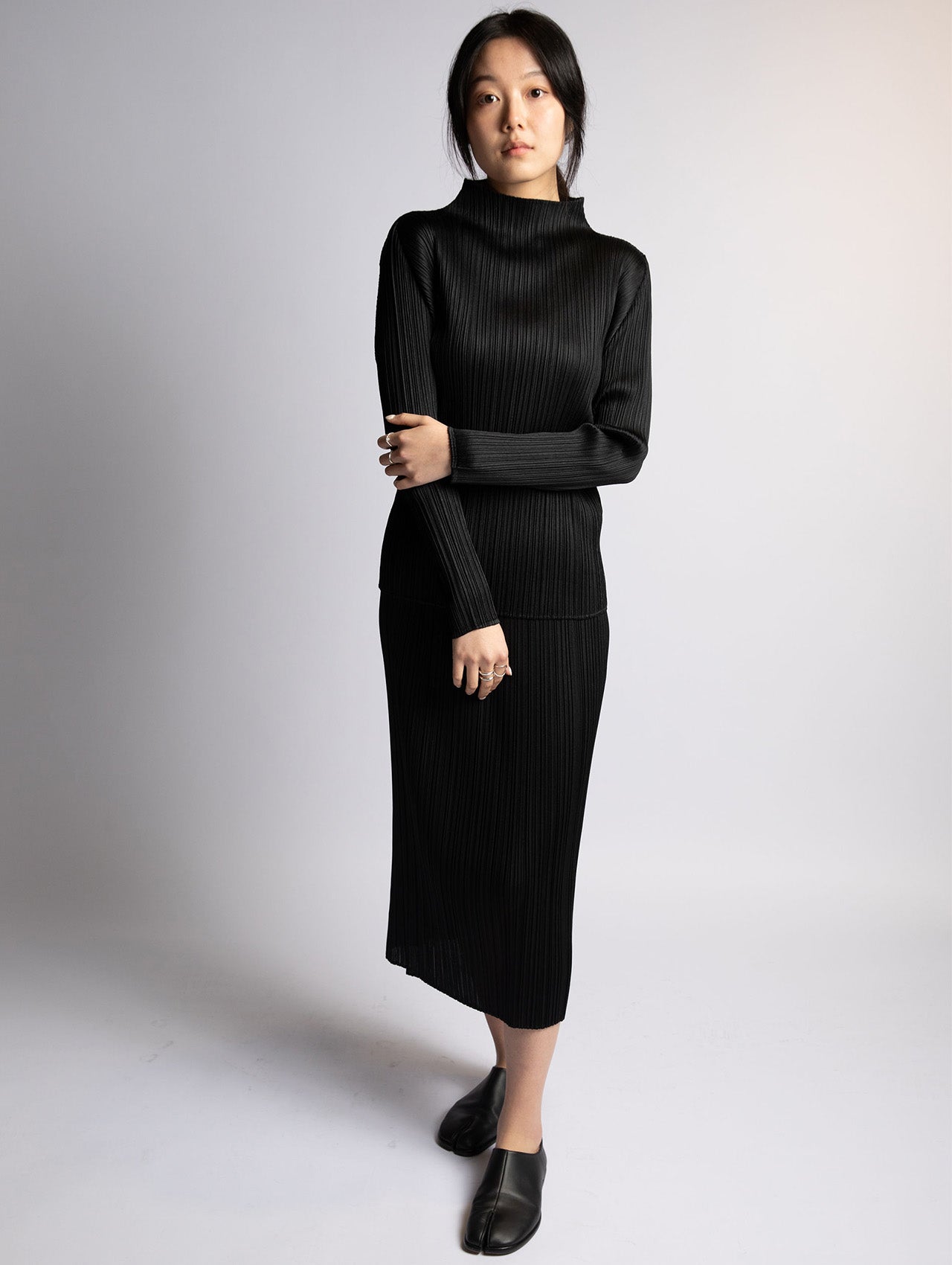 Pleats Please Issey Miyake Black Basics Long Sleeve Top