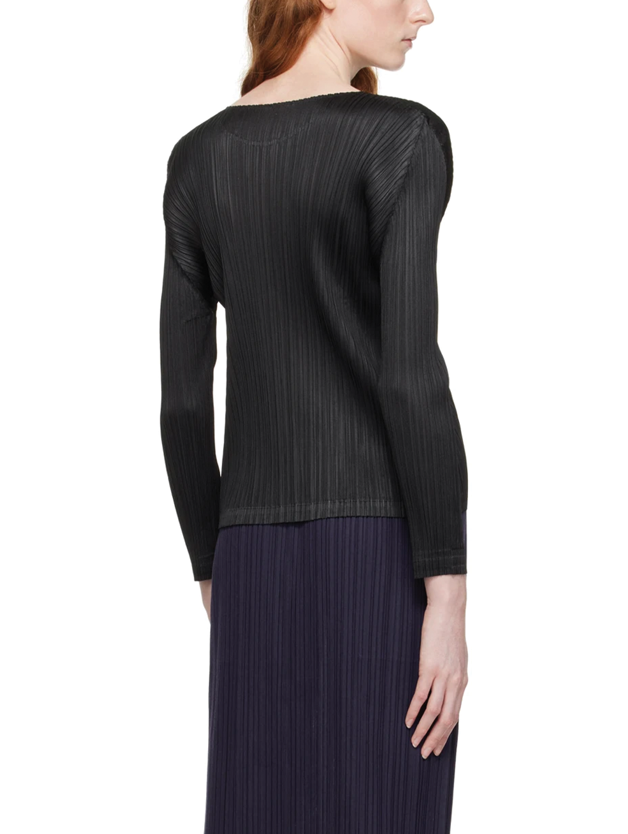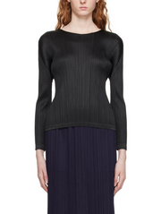 Pleats Please Issey Miyake Black Crew Neck Longsleeve Top