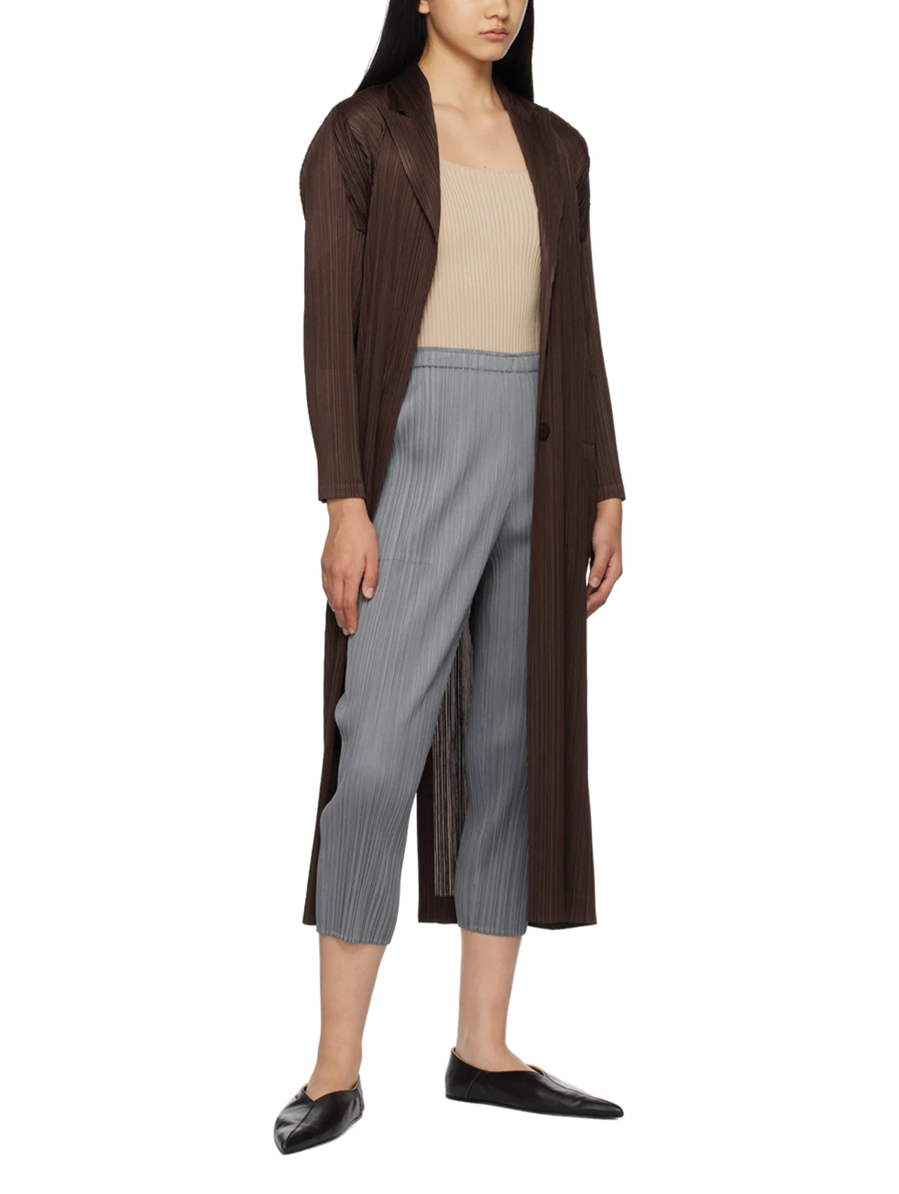 At last: a cropped version of the iconic Pleats Please basic pants. Issey Miyake’s humble ambition to make practical, washable, lightweight crease-free clothing has driven him to create some of the world’s most extraordinary creations. Each Pleats Please garment is developed from a single thread with pleats added after the clothes have taken shape via a secret heat application technique. Ageless, genderless, and trans-seasonal, these garments are wrinkle-proof, machine-washable, and travel-friendly. There’s a reason he’s called the grandfather of modern design.